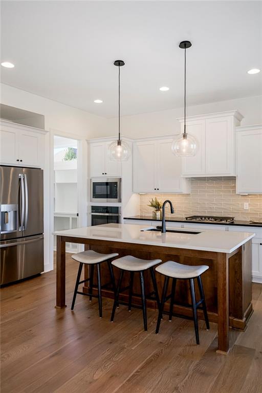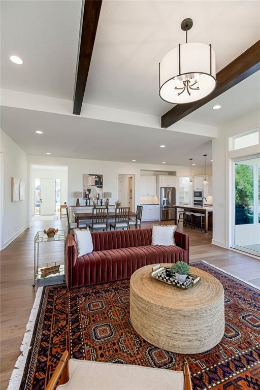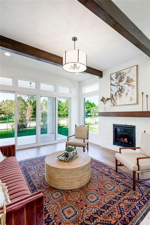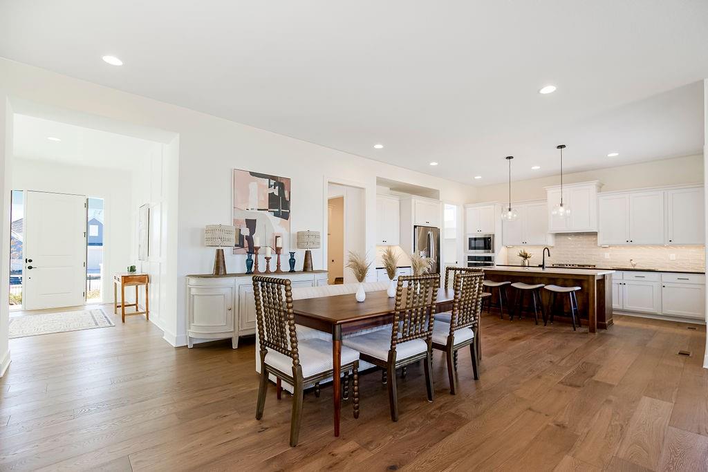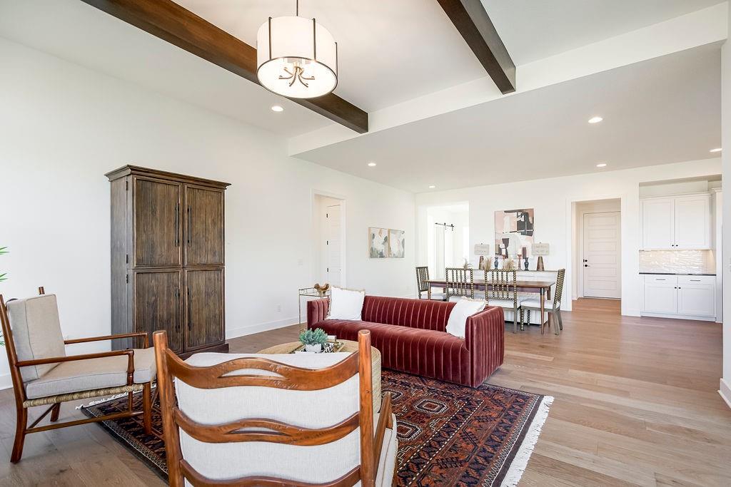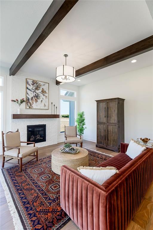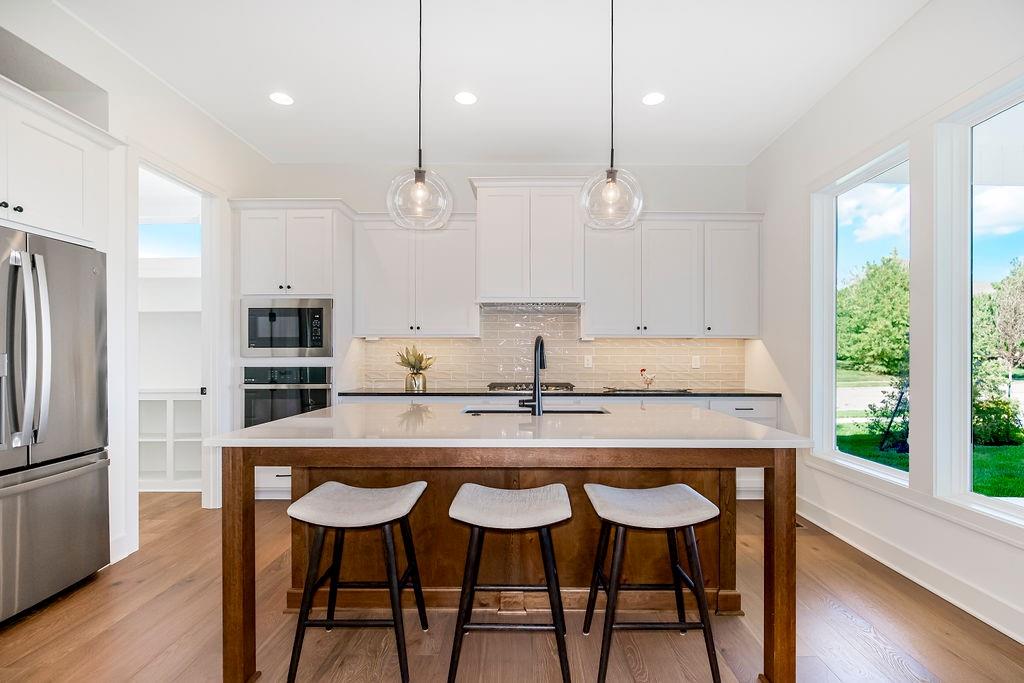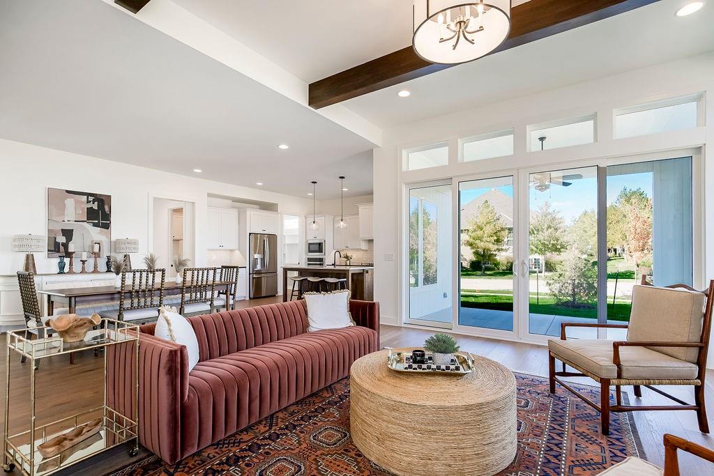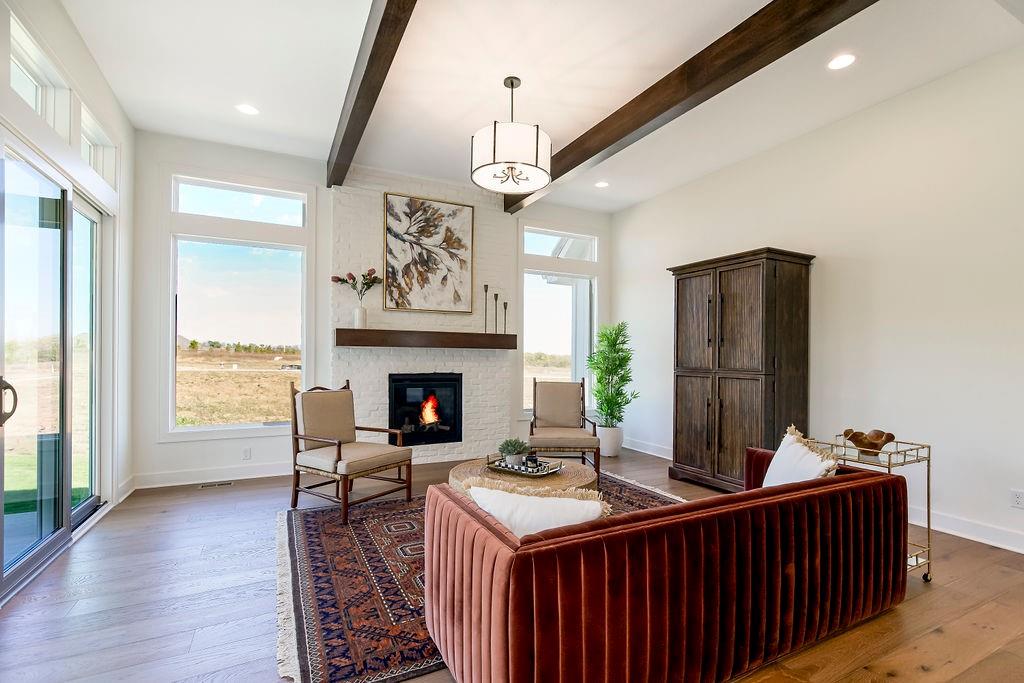 The Tahoe Plan, Elevation 2, by Rodrock Homes, in Stonebridge Villas! Enjoy a covered patio offering sunset views! Quick access to I-35 and US-169 Highways. Modern 3-bed, 2.5-bath. Open-concept main level connects kitchen, dining, and great room with vaulted ceiling and beams. Kitchen features quartz countertops, island, walk-in pantry, subway backsplash, and stainless appliances. Main-level primary suite includes zero-entry shower with bench, dual vanities, and large walk-in closet. Pocket office, laundry with sink, and drop zone add daily function. Lower level offers recreation room with wet bar, two bedrooms, full bath, and storage. Two-car garage. HOA amenities include snow removal and lawn care, pools, clubhouse, tennis, and trails. 1.5 mi to Price Chopper, 2 mi to Hy-Vee and Heritage Park, 5 mi to Bluhawk Center and KU Hospital, 4 mi to Overland Park Arboretum. 0.3 mi Prairie Creek Elementary School.