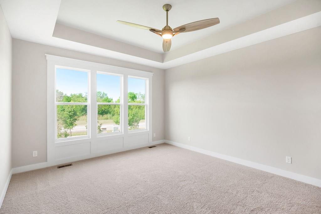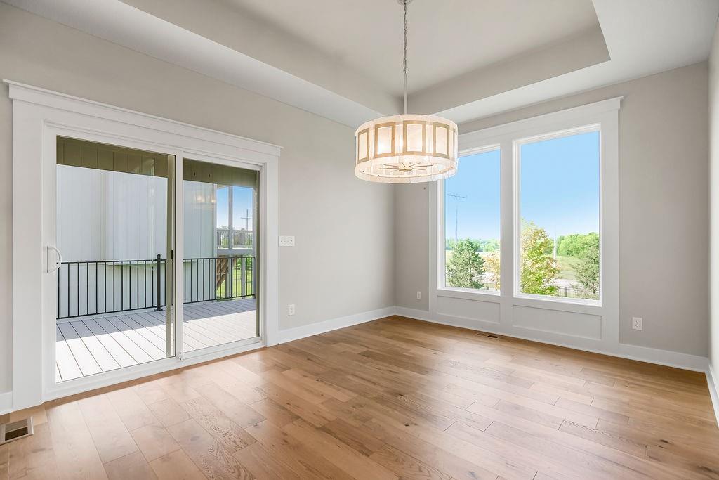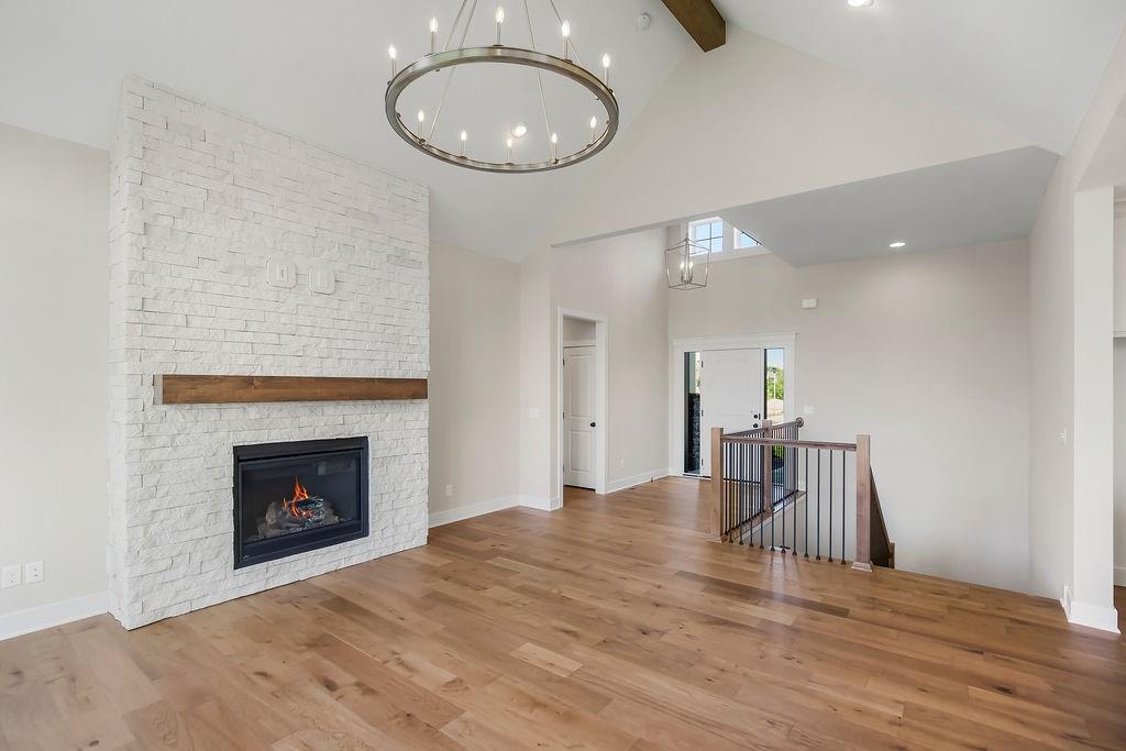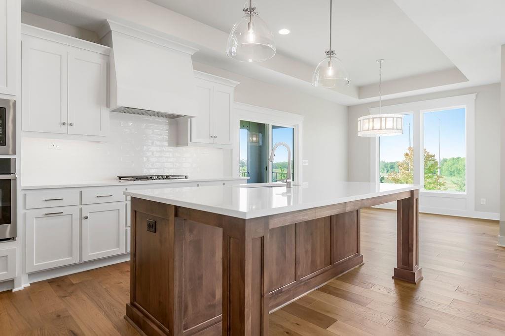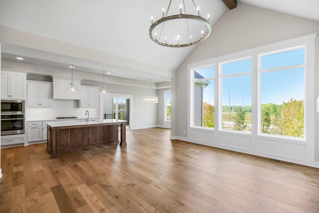 Move-in ready, the Sonoma by Rodrock Homes is a reverse-style floor plan featuring a main-level primary suite and an open Great Room with a vaulted ceiling and a wall of windows across the back, filling the space with natural sunlight. The chef’s kitchen offers a large island, walk-in pantry, and convenient drop zone off the garage. A guest bedroom with a private bath is located just behind the kitchen. The primary suite features a vaulted ceiling, spa-like bathroom with dual vanities, walk-in shower, and a huge closet with direct access to the laundry room. Enjoy outdoor living with a covered deck off the dining area, perfect for entertaining or relaxing. Residents of Stonebridge Trails have access to four zero-entry pools, two clubhouses with fitness facilities, sport courts, playgrounds, and walking trails. The home is approximately 0.3 mi from Heritage Park, a 1,234-acre recreational hub with a lake, dog park, athletic fields, disc golf course, softball, football, and soccer fields, plus an 18-hole golf course with driving range. Nearby schools include Prairie Creek Elementary (~0.6 mi), Woodland Spring Middle (~1.0 mi), and Spring Hill High (~5.5 mi). Daily conveniences are close by, including Natural Grocers (~4.2 mi), Price Chopper (~4.5 mi), and local coffee spots (~1–1.2 mi). Taxes, square footage, and room dimensions are estimated – Buyer or Buyer Agent to verify.
