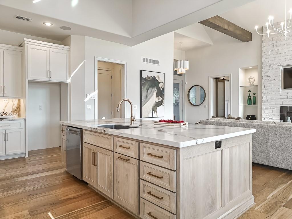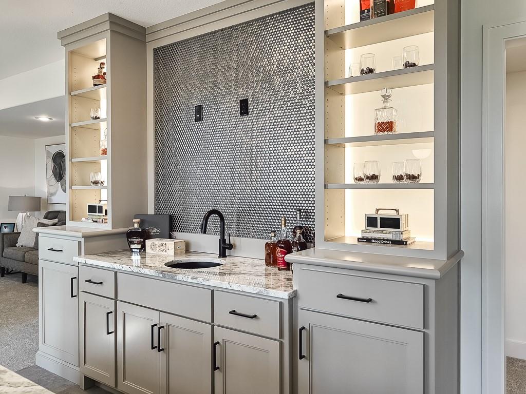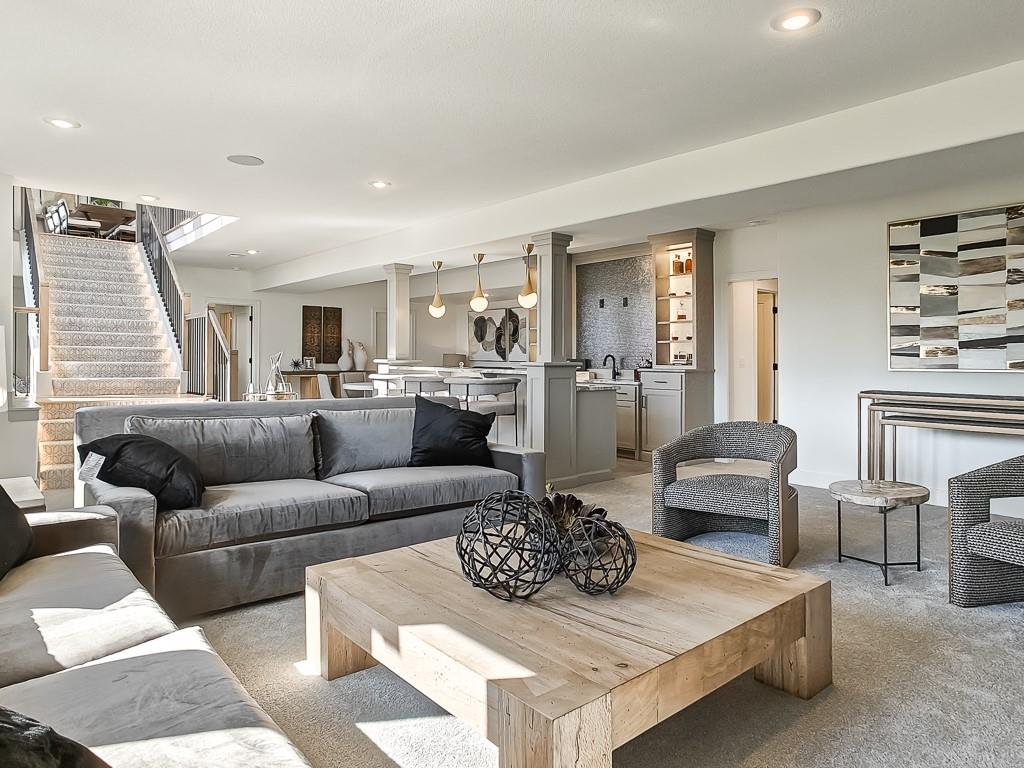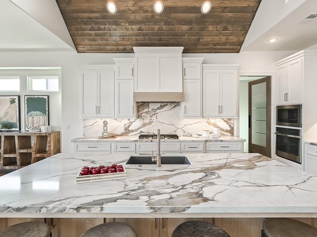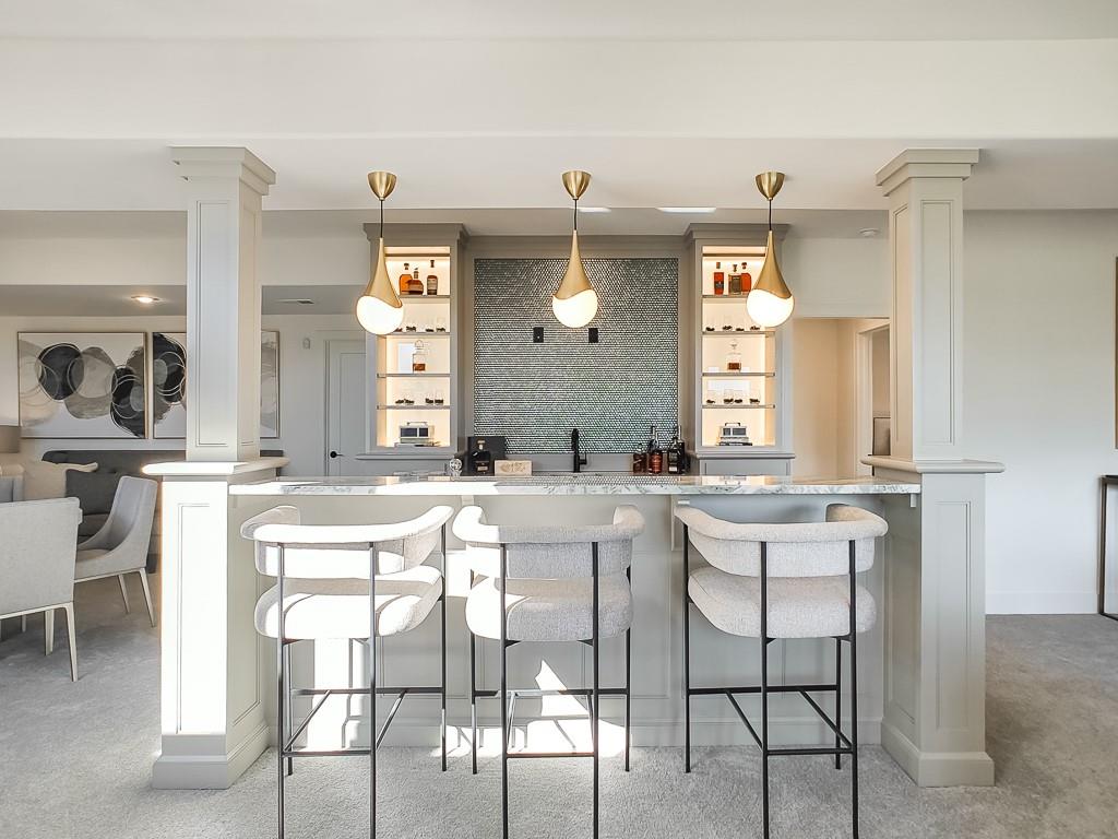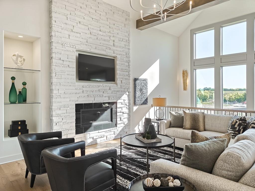 Welcome to the gold award-winning Brookridge IV by the esteemed Don Julian Builders. This reverse 1.5-story model in Bristol Highlands Estates blends luxury with livability. Enter through double doors into a dramatic foyer and great room with 2-story windows, vaulted wood-beamed ceiling, and a striking stone fireplace to impress from the moment you step inside. The kitchen shines with an oversized island, 5-burner gas cooktop, custom hood, vaulted ceiling with skylights, and a massive walk-in pantry with prep space and second fridge. Just off the dining area, step onto the covered deck—perfect for morning coffee or unwind in the evening with a view. The main-level primary suite offers a spa bath with dual vanities, soaking tub, tiled shower, and a walk-in closet that connects to the laundry. Two more bedrooms, a full bath, and a powder room for guests round out the main floor. Downstairs, the finished walkout basement is built for fun with a media wall, rec room, game space, spectacular bar, plus 2 more bedrooms with private bathrooms that walks out to a patio for another outdoor entertaining space. Nestled in the rolling hills of Shawnee, Bristol Highlands offers stunning views and a peaceful setting. Enjoy top-rated De Soto schools, shopping, dining, and outdoor recreation with nearby parks, trails, Shawnee Mission Park, and multiple golf courses. It’s the perfect balance of convenience and natural beauty. THIS IS A MODEL - NOT FOR SALE on lot 13.