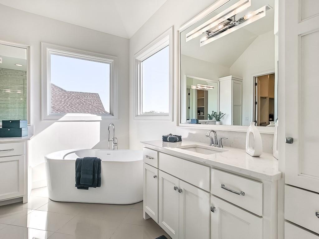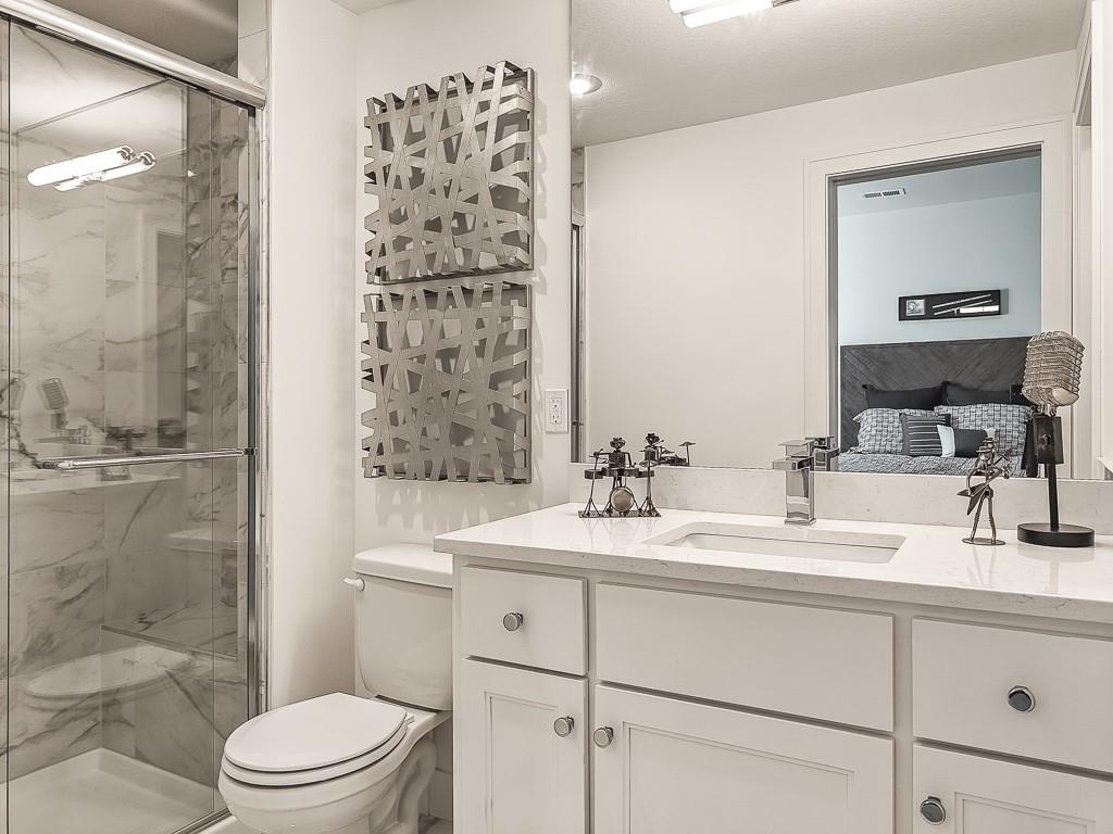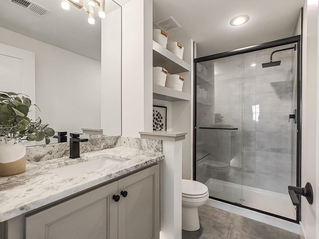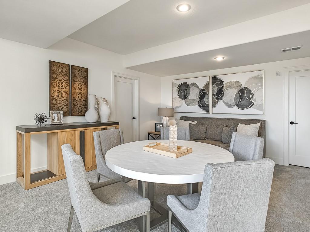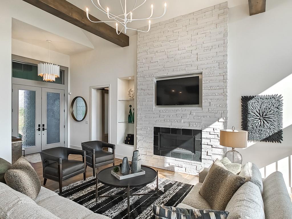 Welcome to the gold award-winning Brookridge IV by the esteemed Don Julian Builders. This reverse 1.5-story model in Bristol Highlands Estates blends luxury with livability. Enter through double doors into a dramatic foyer and great room with 2-story windows, vaulted wood-beamed ceiling, and a striking stone fireplace to impress from the moment you step inside. The kitchen shines with an oversized island, 5-burner gas cooktop, custom hood, vaulted ceiling with skylights, and a massive walk-in pantry with prep space and second fridge. Just off the dining area, step onto the covered deck—perfect for morning coffee or unwind in the evening with a view. The main-level primary suite offers a spa bath with dual vanities, soaking tub, tiled shower, and a walk-in closet that connects to the laundry. Two more bedrooms, a full bath, and a powder room for guests round out the main floor. Downstairs, the finished walkout basement is built for fun with a media wall, rec room, game space, spectacular bar, plus 2 more bedrooms with private bathrooms that walks out to a patio for another outdoor entertaining space. Nestled in the rolling hills of Shawnee, Bristol Highlands offers stunning views and a peaceful setting. Enjoy top-rated De Soto schools, shopping, dining, and outdoor recreation with nearby parks, trails, Shawnee Mission Park, and multiple golf courses. It’s the perfect balance of convenience and natural beauty. THIS IS A MODEL - NOT FOR SALE on lot 13.