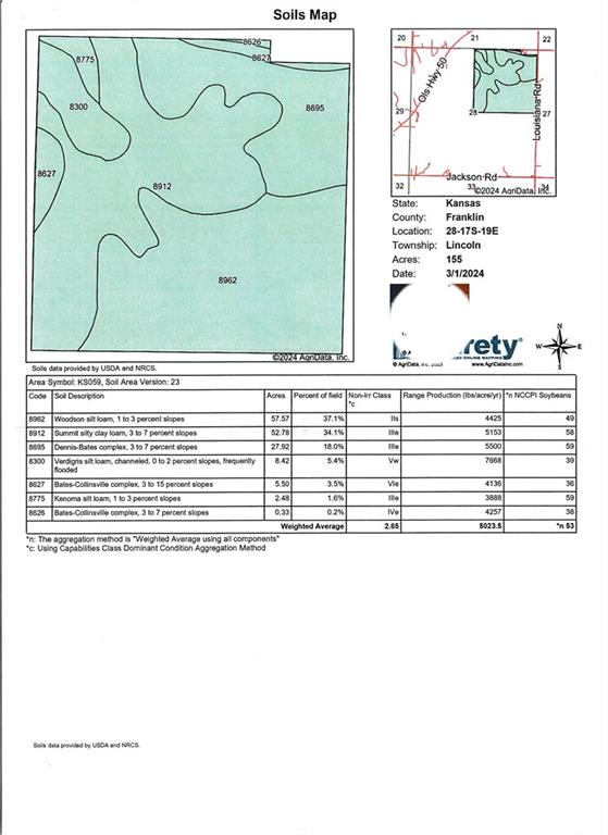 Beautifully rolling Franklin County Kansas 157-acre farm just off of a paved road. This farm is a mixture of cool season and native prairie pasture that is mostly fenced with some cross fencing. There is approximately 52 acres land that is prime Class 2 soils that has been farmed in the past that could be broken back out and farmed. The farm has 3 nice ponds and some trees for shade for livestock and wildlife habitat. The ponds are known for holding good populations of geese and ducks which makes this a nice farm for a waterfowler, too! Rural water and electricity are close by if the new owner wanted to build a home or shop.