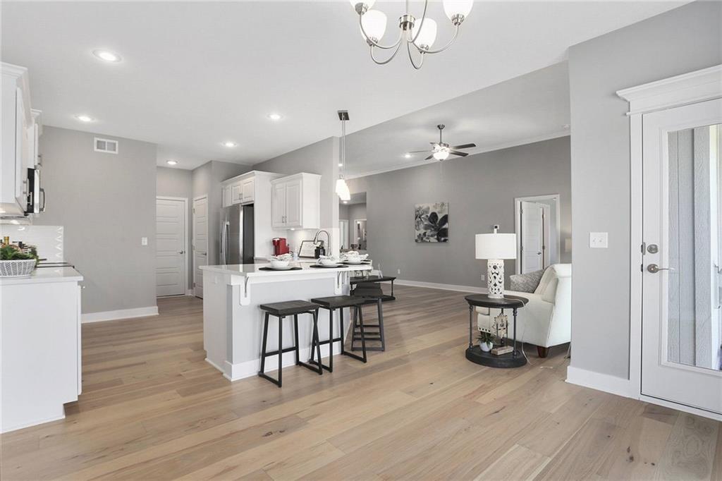 The Aspen II offers a beautifully designed open-concept ranch plan that combines style, comfort, and efficiency. The home showcases gleaming hardwood floors, elegant granite countertops, and exceptional craftsmanship throughout. The spacious primary suite features a large walk-in closet and a luxurious walk-in shower, creating a relaxing retreat. Built for quality and energy efficiency, this home includes a 95% high-efficiency HVAC system, Gerken Thermopane windows, and R-49 attic insulation. Thoughtful upgrades such as a covered patio, comfort-height toilets, gas line to the range, under-cabinet lighting, battery backup for the sump pump, and a full lawn sprinkler system add convenience and peace of mind. Located in a welcoming community that offers the best of both worlds—close to shopping, dining, and amenities, yet with a serene “in the country” feel. The HOA provides lawn care, snow removal, and sprinkler maintenance, allowing you to enjoy a low-maintenance lifestyle. This home is the designed model home.