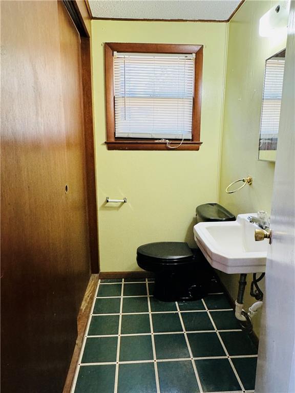 Bathroom featuring tile floors, sink, toilet, and a textured ceiling