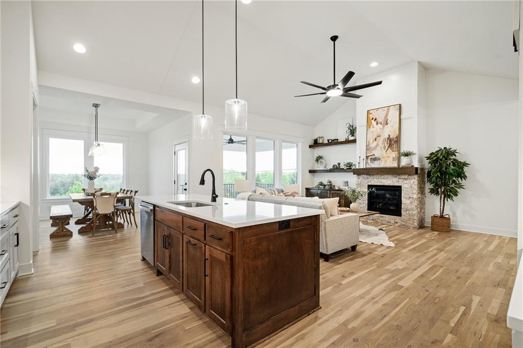 Come explore the award-winning Shea Expanded Ranch by DCB Homes! This 4-bedroom, 3-bath beauty features a striking new front porch elevation and an inviting open layout designed for modern living. This home is loaded with upgrades and features on-trend selections & designer finishes. Ask about our $5,000 Buyer Bonus! The main level impresses with a vaulted ceiling spanning the Great Room and Kitchen, creating a bright, airy feel. The kitchen offers abundant cabinetry, a large island, built-in appliances with a gas range, and a walk-in pantry. A spacious dining area is a buyer favorite that opens to the back deck—perfect for entertaining. The primary suite features a walk-in shower, freestanding tub, double vanities, and a generous walk-in closet. Two additional bedrooms and a full hall bath are conveniently located on the opposite side of the main level, along with a laundry attached to the Primary and mudroom. The finished lower level includes a large rec room with bar, fourth bedroom, third full bath, and two large storage areas. A 3-car garage completes this fantastic plan. Home is at the finish stage and ready for a quick close! Lakeview Ridge is a new build community just west of Lake Olathe with great homes started and fantastic lots available. POOL coming in 2027. You can get to the neighborhood off of Dennis & Houston with easy access from K7 or coming from Lakeshore. Our Sales Office is located 14271 Houston. Our development is right next to Lake Olathe and neighborhood feeds into Clearwater Creek Elementary, Oregon Trail Middle School and Olathe West High School.