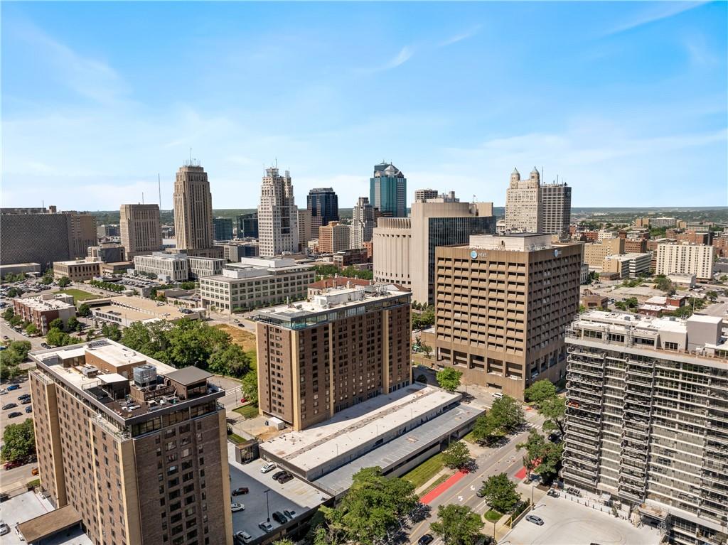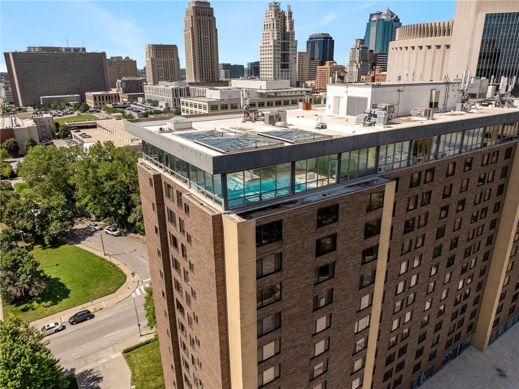 Huge Price Improvement! Welcome to your new home! All cleaned and prettied up for its new homeowners. You will love the amazing views this condo has to offer...you can see the new KC Current stadium. Kitchen boasts black appliances, newer cabinets and lots of counter space. Relax in the living room watching tv, studying or looking at the amazing views of Kansas City. Take a ride up to the penthouse level and enjoy time in the pool and/or sauna or stay healthy using the state of the art work-out room. Need more room for guests, entertain in the main level lounge. The approved assessments for this unit have been paid. See attached supplements. All information deemed liable but not guaranteed. Buyer and buyer's agent to verify all information including measurements.