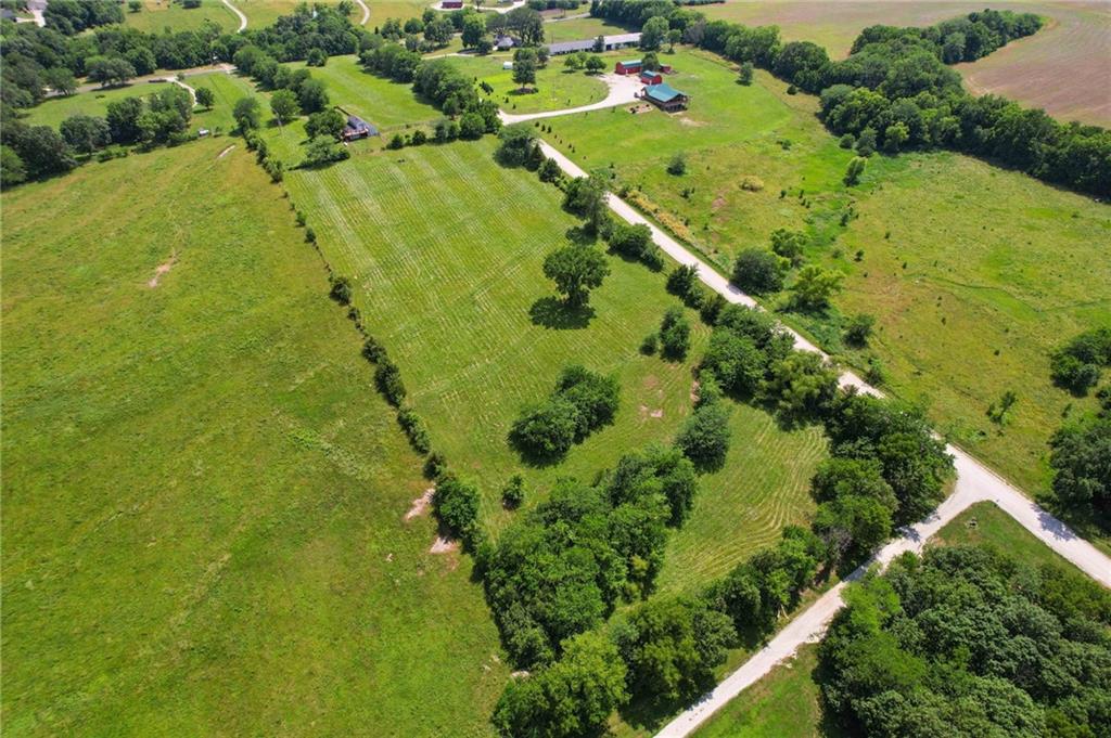 Hilltop 9.95 Acres with scenic views, trees, pasture, 36x36 barn with 4-stalls & tack room, water & electricity to barn, Lee's Summit schools.