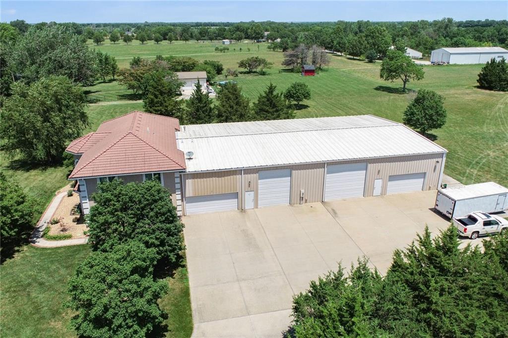 SELLER says bring ALL OFFERS it's TIME TO SELL, 10 acs Oasis. New windows, heated tile floors, custom kitchen cabinets w/island. Kitchen melds directly into dining room w/ the same cabinets including built-ins encasing the great room TV. A butler's pantry is adjacent to the kitchen! An additional 2nd floor master w/ bathroom; an adjacent room could be easily repurposed w/ a sitting room & kitchenette to create a large master suite. The home sports 3 heating systems; floor heat, a propane furnace, & a heat pump. 2 of the upstairs bedrooms have an entry way that has separate heating, cooling, & hot water heater that can be closed off if not in use. Instant hot water to all faucets is provided by a recirculating pump. All interior & exterior walls are 6" thick making the home extremely quiet. The stucco facade has color mixed in, providing permanent color. The tile roof is rated at 50+ yrs. The 1 acre pond is 16 ft. at it deepest to keep the fish alive all winter. The pond is stocked with Bass, Channel cat, Blue gill, Hybrid Blue gill and Red eared rock crushers. The pond is spring fed, very clear & well maintained. The home took 2 yrs to complete, finished in 2001. The back 1/3 of the property is seeded in brougham. Too many other details to reveal, it's a MUST SEE! CAR ENTHUSIAST DREAM space for more than 20 cars under one roof. Keep your collection & work space close to you. Paint booth, engine hoist, & special work room in a 60 x 100 heated & air conditioned shop(all have concrete floors) with 3 separate sections. There are 4 overhead doors along the south side. Garage/shop has a double 8' doors, two 16' doors, & on the end a double 12' door. The garage on the end has a spacious shop on the 2nd floor approx 1200 sq. ft. 2 garages have finished sheet rocked walls. The 2nd bay has space to park a full size RV w/sewer dump & 50 amp service. In addition, 2-50 amp service & dump for guest on the outside pad. Multiple doors provide accessibility to the 100 ft. long shop.