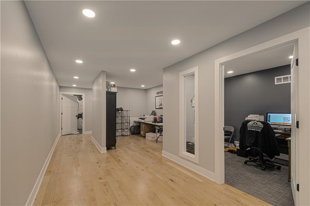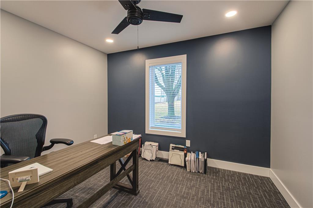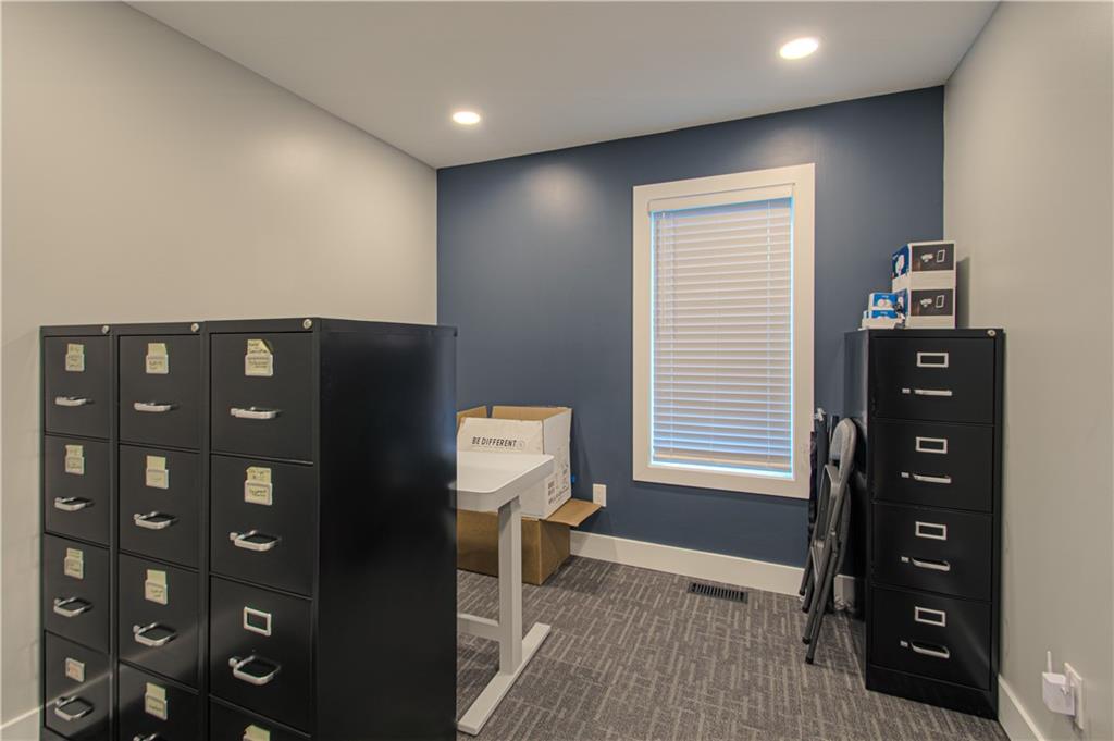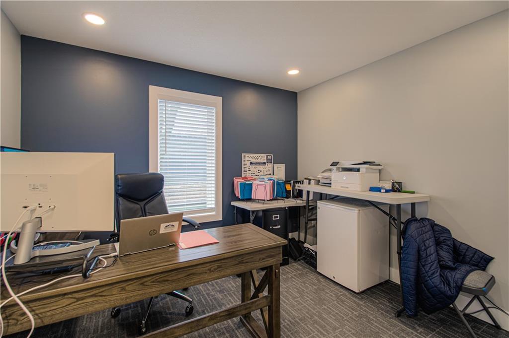 HUGE Price Reduction! This prime commercial property offers a versatile space ideal for various business operations. It was recently remodeled and features 17 spacious offices, 6 bathrooms, a warehouse, and a showroom. The full kitchen and conference rooms add convenience and functionality, while ample storage solutions and parking spaces enhance its appeal. Room for building expansion in the back. Located on 1.6 acres with significant frontage exposure, this property provides an excellent opportunity for growth and visibility in the thriving Lee's Summit area. Lots of new businesses and restaurants coming soon as well! Need additional income? Downstairs offices could be leased out.