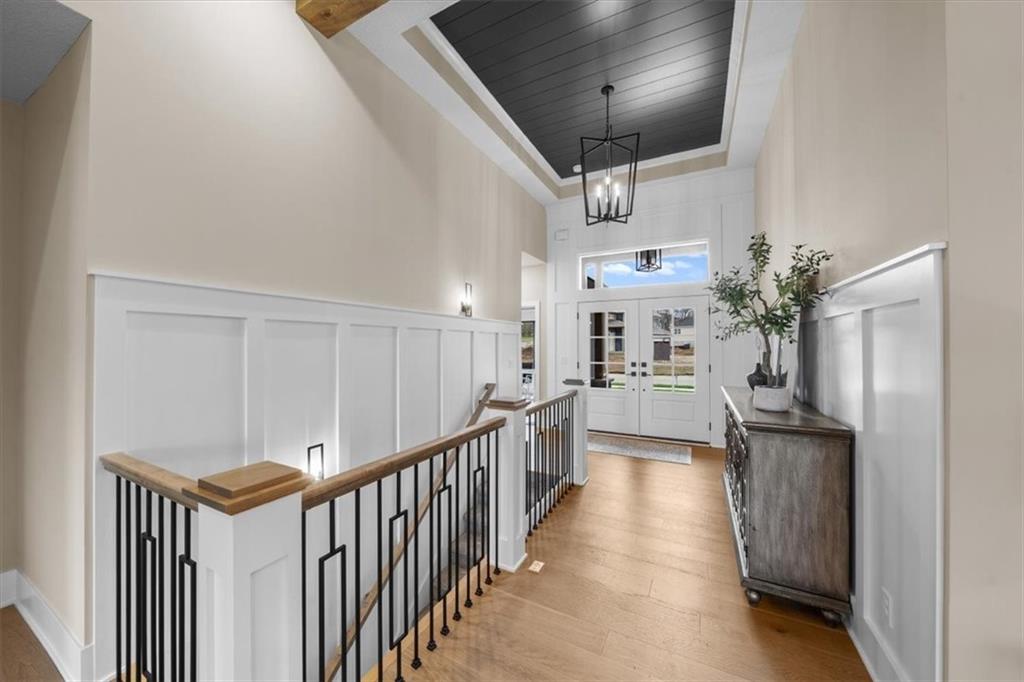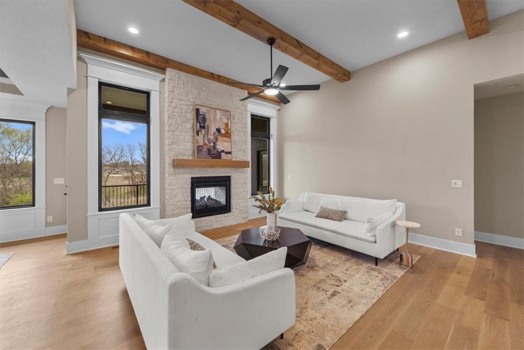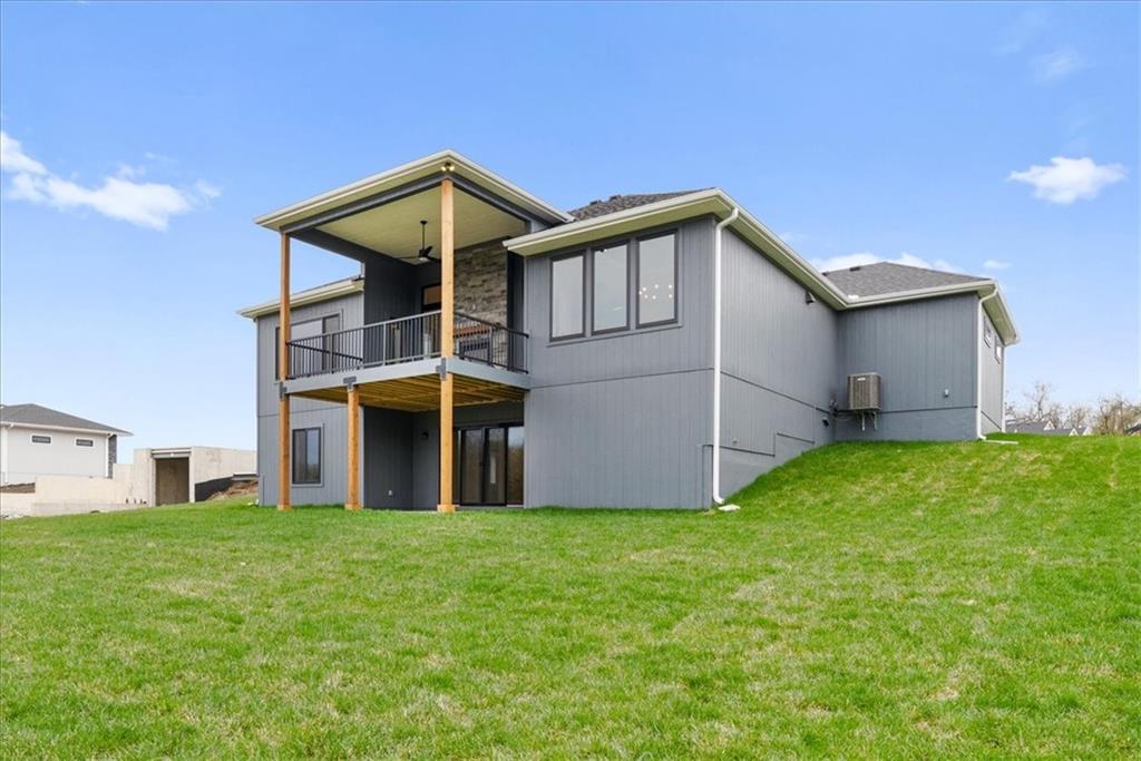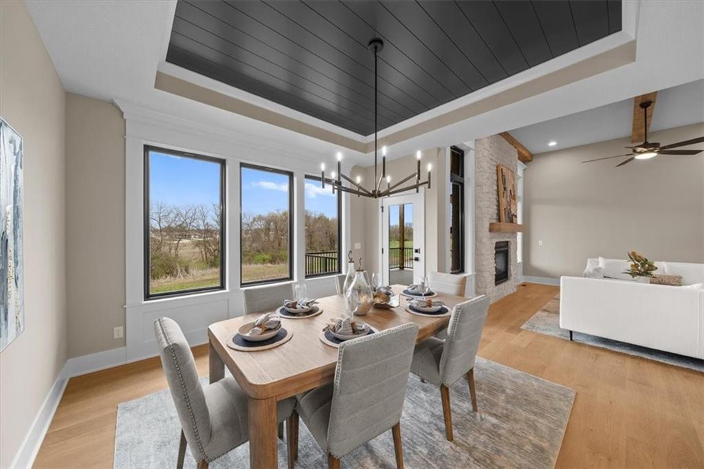 The Phoenix II by Walker Custom Homes is a stunning Reverse 1.5 Story home offering 4 bedrooms and 3 bathrooms on a serene walkout lot backing to greenspace. This home is designed with beautiful details and offers an exceptional outdoor living experience, complete with a wonderful fireplace on your back deck. The great room features enormous windows that showcase the see-through fireplace. The home is spacious and open, featuring vaulted ceilings throughout. The gourmet kitchen is designed for both functionality and style, making it perfect for everyday living and entertaining. The luxurious master suite includes a freestanding tub, designer tile, and a spacious layout that provides both comfort and elegance. Located in Hook Farms, Hunt Midwest’s newest and fastest-growing Lee’s Summit community, this home offers access to over 65 acres of green space, a community pool, wooded walking trails, and an upcoming community garden. The community is part of the highly rated Lee’s Summit school district.