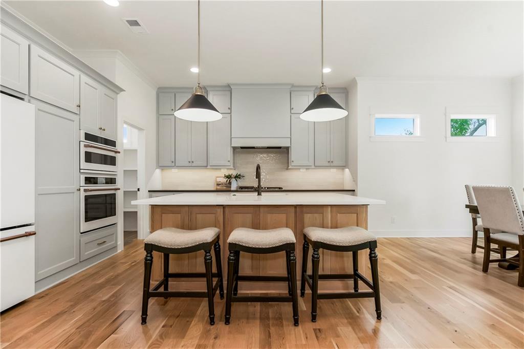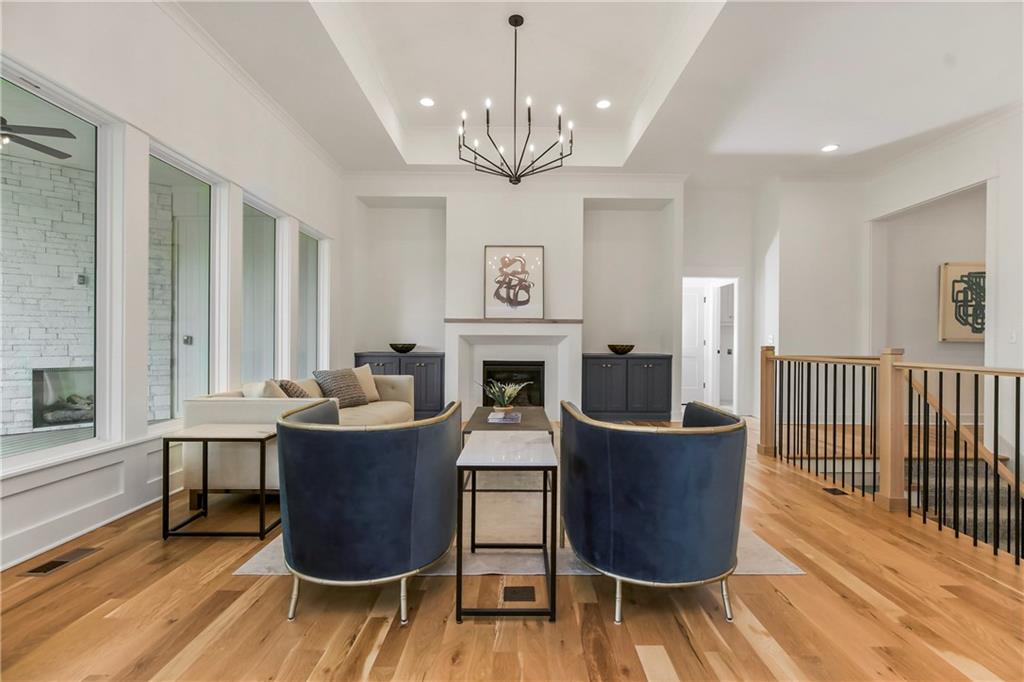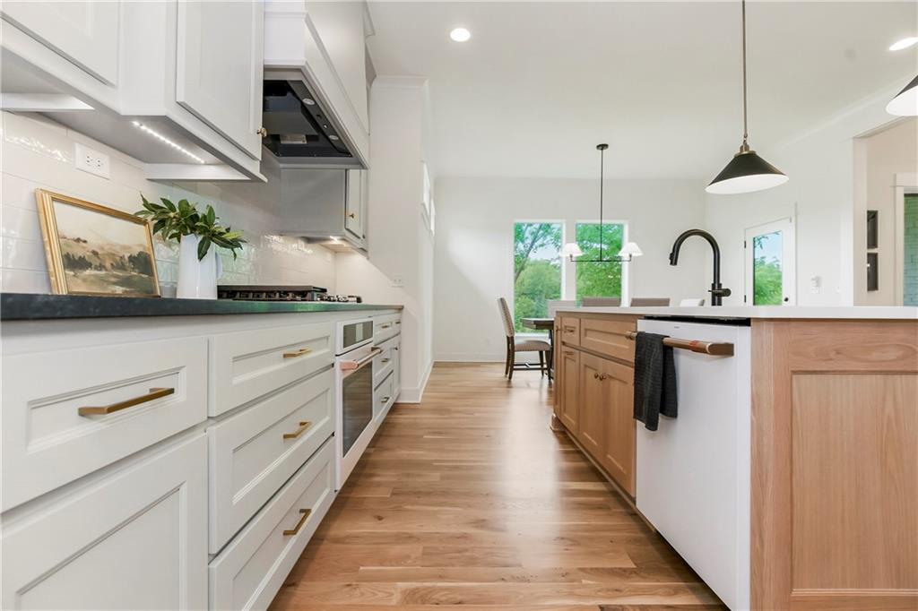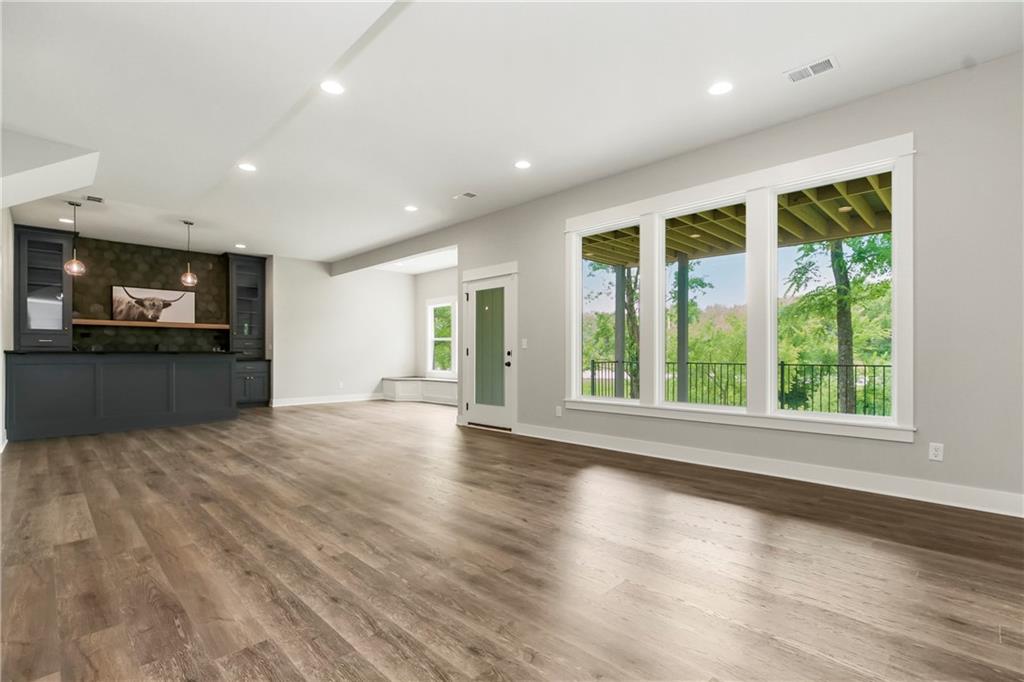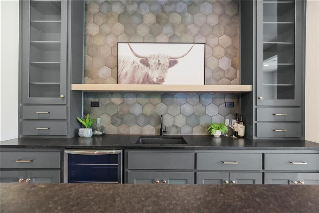 JUST IN TIME FOR THE HOLIDAYS! A PRICE REDUCTION AND $15,000 UPGRADE ALLOWANCE! The Alexander 2 Reverse – Loaded with Upgrades! Variable-width hardwood floors span the entire main level, including the Guest and Primary bedrooms. The beautiful open kitchen boasts custom floor-to-ceiling cabinets, granite countertops, and upgraded plumbing fixtures. It features a premium GE Cafe appliance package with a 36" gas cooktop, double ovens, convection microwave, dishwasher, and refrigerator. The Great Room is prewired for surround sound and overlooks the maintenance-free covered deck, which highlights a stunning floor-to-ceiling stone gas fireplace. The Primary Suite features a trimmed accent wall and treed views; the ensuite offers a double vanity, walk-in shower with dual heads (including a wand), a freestanding 70" soaker tub, and a massive closet with direct access to the laundry room's utility sink and folding table. A trimmed stairway leads to the walk-out lower level, where LVP flooring ensures easy cleanup. The Rec Room features a wet bar with ceiling-height cabinets, granite counters, beverage fridge, and microwave. High 10’ ceilings make this space perfect for a future golf simulator or media room. Extras: Upgraded windows, trim package, and garage doors throughout. Includes a sprinkler system, security system (keypad/sensors + 2 months monitoring), and window coverings on the main level. Forest View a premier Rodrock Community featuring Mom's Council Events, a 50-foot waterfall entrance, splash park, zero-entry pool, sand volleyball, playground & picnic areas, basketball and pickle ball. Direct Access to Cedar Niles Park/Trails within the Community and Lake Olathe Park nearby. WINDOW COVERINGS ON MAIN LEVEL INCLUDED! PHOTOS ARE OF ACTUAL HOME. MOVE IN READY!