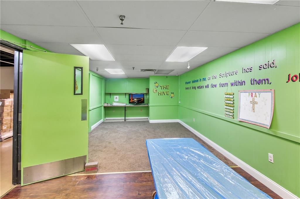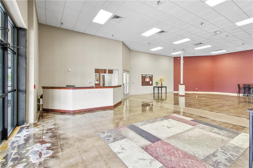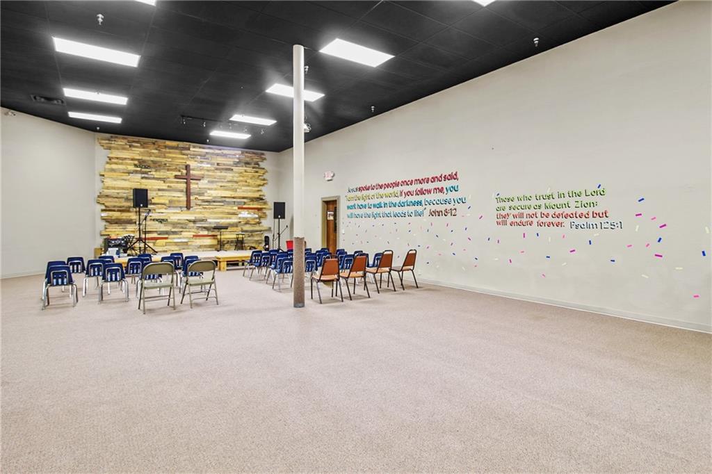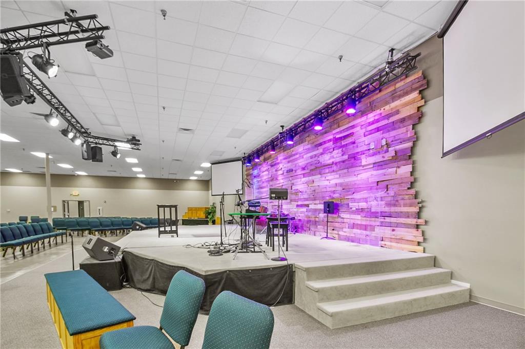 This versatile 71,734 sq ft building offers a unique commercial opportunity with income potential. Currently, over half of the building is occupied on a month-to-month lease, which is transferrable. Situated on 6.1 acres, the property includes parking for 250 vehicles and a sprinkler system throughout. Originally a Walmart and now functioning as a church, the facility features 27 HVAC units (currently only using 10 furnaces and 8 AC units) and a roof with a rubberized covering replaced approximately 13 years ago. Inside, you'll find a 500-seat auditorium, a 100-seat auditorium, a 60x90 gymnasium, three large classrooms, eight offices, a media room, a nursery with a restroom, and a family restroom. The front lobby impresses with 21' ceilings and brand new front doors equipped with an electric eye, sloped roof. Four overhead doors and a loading dock on the west side. The unfinished second level offers potential for expansion and includes roof access and a restroom. This property is ideal for large congregations, educational facilities, or businesses needing extensive space, parking, warehouse space, and flexibility.