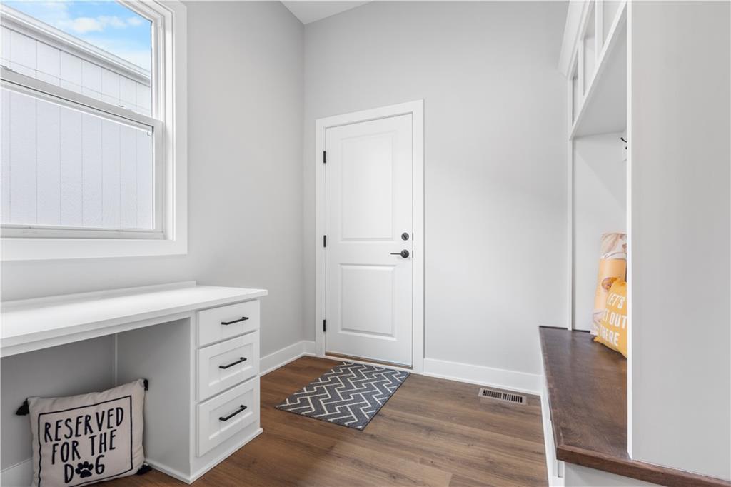 Back on Market, NO fault of Seller. This home is Move in Ready and priced well below reproduction! Hard to find Reverse 1.5 Story under $500k AND situated on a daylight lot backing to trees. Better Hurry!! NO BACKYARD NEIGHBORS. The gorgeous Danbury floorplan by Inspired Homes is a MUST SEE. Affordable, high quality main floor living at its finest featuring 10ft ceilings throughout main floor, a wide-open living area that overlooks your large, covered deck with stairs to a lower patio! Kitchen features custom cabinetry, walk-in corner pantry, extended kitchen island, upgraded appliances and quartz & granite countertops! Main floor primary bedroom/bathroom suite has trayed ceiling, spacious shower and large walk-in closet. Owner's entry features custom, built-in desk and boot bench. Main floor laundry located right off the owner's entry. Your finished lower level includes 2 large bedrooms, plus full bathroom, spacious rec room and large unfinished space perfect for storage. Extended garage bays give you ample space for cars plus more. This home is situated in the quiet, picturesque neighborhood of Kensington Farm, surrounded by mature trees, in Cass County with a Lee's Summit address. Plenty of designer features to enjoy including large custom windows that flood the home with natural light, custom cabinetry, popular “Rev Wood” flooring, GE appliances with gas range, tiled shower in Master bath and mud room/boot bench area with built-in desk. Irrigation system + garage door openers included!