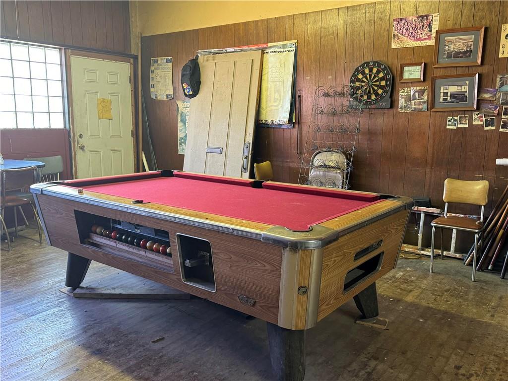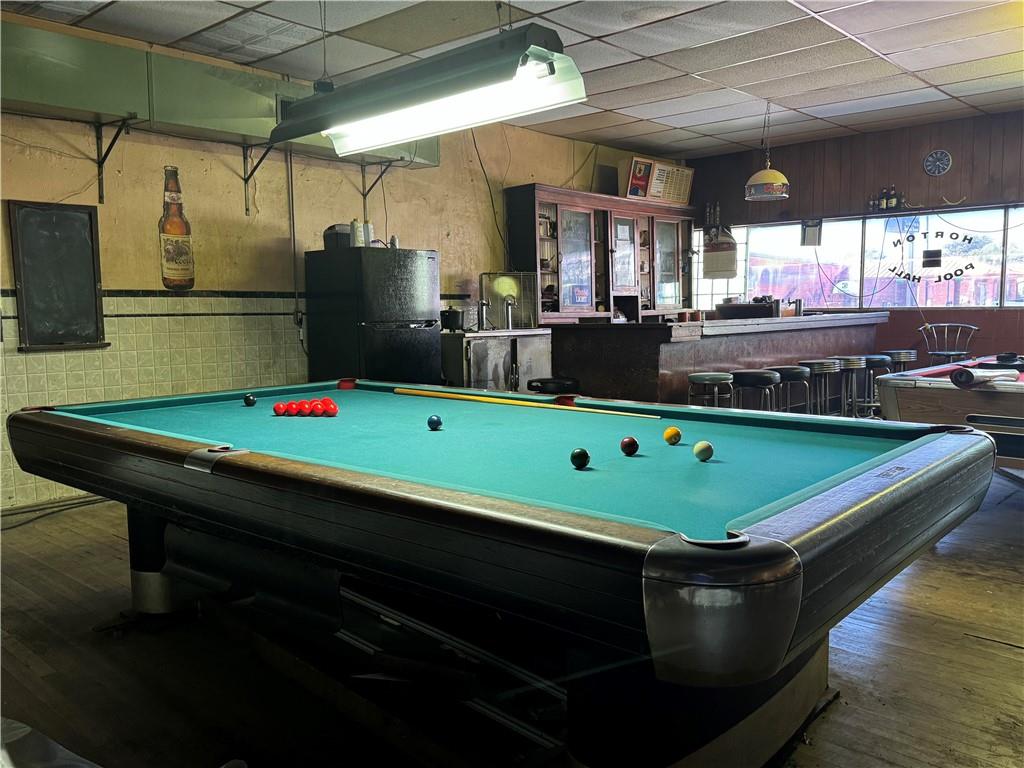 Fantastic opportunity to step into the timeless world of this unique pool hall, where classic charm meets modern day. A centerpiece of the space is an antique bar, rich with history and character. The hall is equipped with snooker tables and a pool table, offering a variety of options for all enthusiasts. Beyond the main entertainment area, is an attached workshop in the back, perfect for storage, personal projects, or customization. Possibilities are endless with this centrally located building. Don't miss out on the rare opportunity to own a piece of history! Sale includes commercial building and contents only.