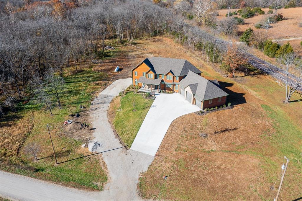 STUNNING 4-BEDROOM 1.5 STORY HOME ON 4 ACRES! This beautiful property offers country living with modern comforts, featuring a chef’s kitchen with granite counters, island, gas range, and a walk-in pantry. The main floor boasts a spacious great room with soaring ceilings and a cozy fireplace, hardwood floors throughout, and a master suite complete with a large private bath, soaking tub, double vanities, and walk-in closet. Another bedroom and convenient laundry are also on the main floor. Upstairs, enjoy a large loft area, two more bedroom suites with walk-in closets and private baths, plus a den or study room. The covered deck with stamped concrete overlooks the peaceful surroundings, while a walkout basement offers plenty of room to expand. Ideally located with easy access to town—this home truly has it all!