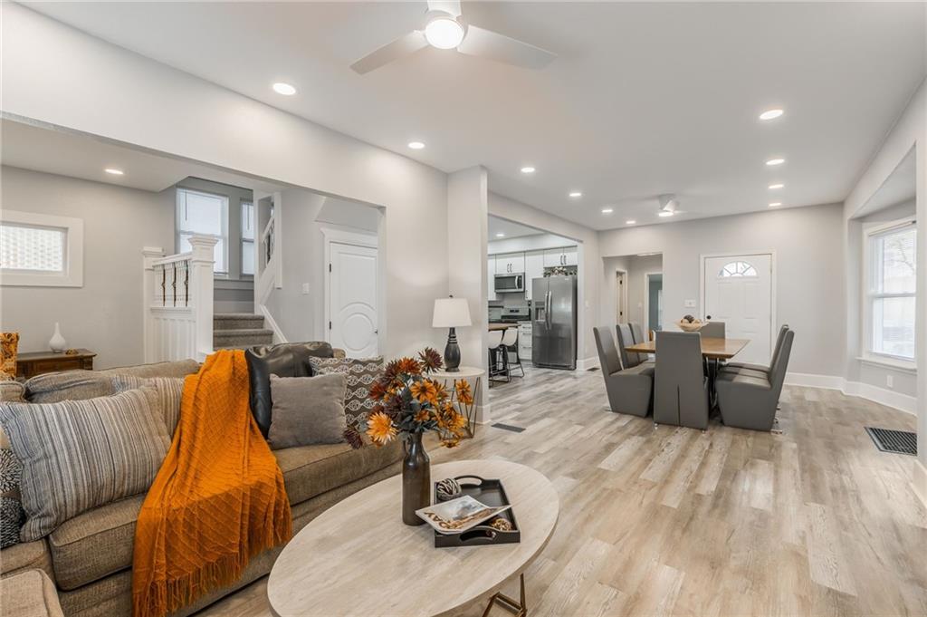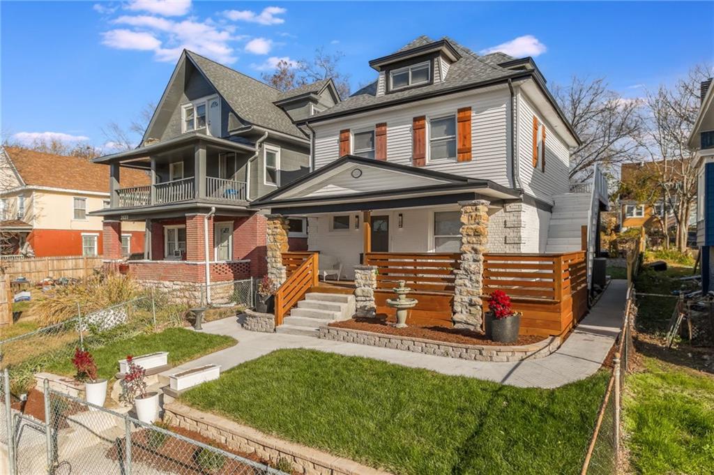 Fantastic opportunity to own a newly redone 3 story, 5-bedroom, 4.5-bathroom home overlooking beautiful downtown KCMO. This home has all the features with a spacious wide-open floorplan, a large luxury electric fireplace in the living room, fully loaded kitchen with updated stainless appliances. The first-floor level has a bedroom with full bathroom attached to the suite, with a separate entrance. This unique floorplan has a double master with one master bedroom on the 2nd level, that has its own private entrance, sitting/sunroom and full bathroom. Laundry room is located on the 2nd floor, along with 3 other large bedrooms and a hallway bath. Third floor level is like a dream. It's a huge spacious bedroom, with a large master bathroom, with a picture-perfect view of downtown KCMO right outside your window. Newly landscaped, detached garage in rear of home, huge front porch, upper deck, and so much more! This home won't lasty! Hurry ~ Buyer's benefit to a 10yr tax abatement. 10yr, zero property taxes what a huge savings!