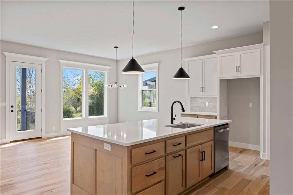 MOVE IN READY -Discover the exceptional craftsmanship of Lamendola Custom Homes with The Aiden Expanded, located on Lot 99. This stunning 4-bedroom, 3-bathroom reverse-story home offers an impressive blend of style, comfort, and functionality. The main level features a beautifully designed kitchen, an inviting great room, a serene primary suite, a secondary bedroom that can double as an office, a convenient 3/4 bath, and a well-placed laundry room. The lower level expands your living space with two additional bedrooms, a full bathroom, a spacious family room, and an impressive bar complete with a large island—perfect for entertaining. Situated on a daylight lot with a covered deck, this home also includes an oversized garage with 8-foot garage doors for added convenience and versatility. Come experience the quality and elegance this home has to offer! Close to schools, highways, shops and restaurants! Come check it out! THIS HOME IS MOVE IN READY.