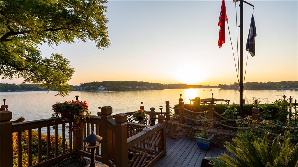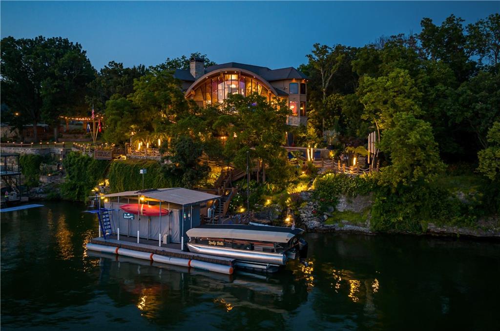 With an expansive lake front view, this home was designed for grand-scale entertaining yet tranquil retreat living. A museum-worthy 1,000 bottle wine room and glass dome-topped, free-floating 3 story spiral staircase greet you upon entering custom front doors. Prepare to be wowed by a 26-foot barrel wood ceiling, extending thru the home, and 900-gallon living reef, saltwater aquarium. High-end finishes/fixtures throughout include natural stones, rare woods, Labradorite main kitchen countertops, and hand-blown glass Chihuly chandelier. Stunning architectural ceilings include one-of-a-kind dining room ceiling - truly a work of art. Private Primary Suite hallway with marble mosaic floor, beverage bar, and stairway to the library & gym/spa. Suite includes fireplace, home theater system, steam shower, and deck access. Telescoping enclosure enables year-round use of infinity-edge pool. Lovely al fresco deck-dining with outdoor kitchen, custom granite 22-person table, fireplace, TV, & lake views. Indoors connects to outside via LL bi-folding doors, spa room and deck staircase. Lush, extensively landscaped grounds include gas torches, fountains, waterfalls, lighting, & integrated, computer-driven bug suppression system. Double boat dock with 4 hydro lifts. Appreciate the convenience & comfort of a 5 stop/2 door elevator, the latest smart home integrated system, 2 laundry rooms, dog shower, greenhouse, back-up generators, and heated driveway, steps, deck, main & lower-level European limestone floors. Midwestern-friendly, the Lake Winnebago community and well-stocked, 400-acre lake include many amenities. Why vacation at the lake when you can live the lifestyle every day? Home located less than 30 min from KC, in Lee's Summit school district.