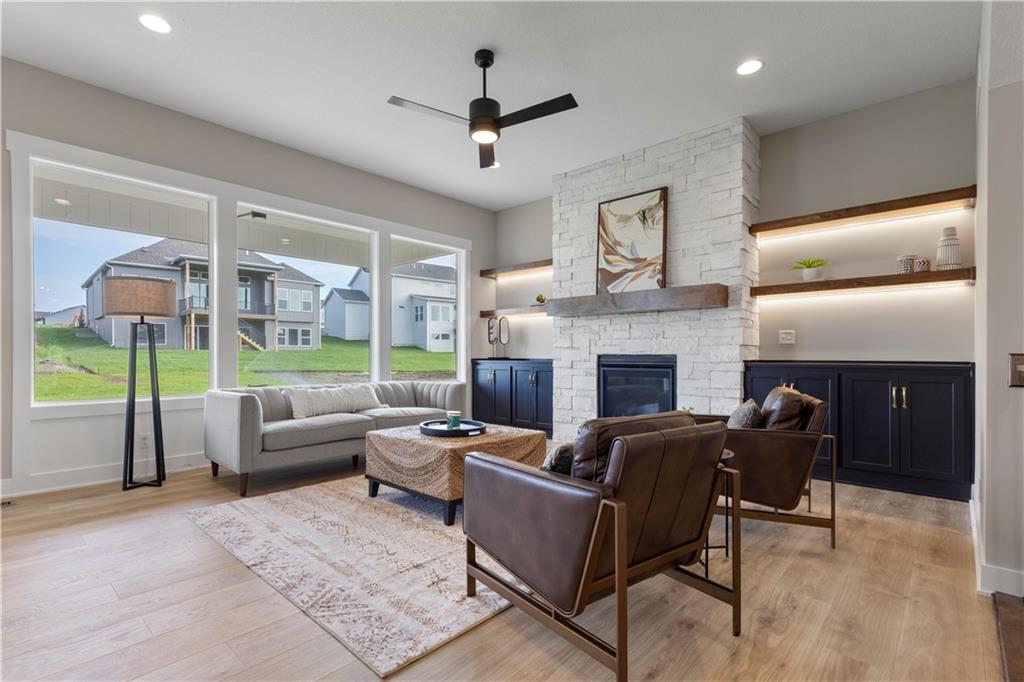 $10k Builder Incentive for closing costs or rate buy-down assistance if you close before 12/31/25! Move in Ready! The Inglenook by Inspired Homes features a stunning Modern farmhouse exterior, oversized porch and black metal roofing. Large flat lot and yard is perfect for evening BBQ's on your perfectly large, covered patio. Unique and fantastic layout with all of the rooms you are looking for. Glass doors as you enter your home office with walk-in closet to store all of your office paperwork. Office can double as main floor 5th bedroom. Main floor features 10 ft ceilings and large picture windows. Large kitchen with high end finishes, quartz counters, built in appliances with gas cooktop, upgraded lighting, under counter lighting, oversized walk-in pantry and opens to and even larger great room that features custom built in's next to fireplace. To die for breakfast room with panoramic views and custom X-beam ceiling detail. Rare and oversized 3 car garage fits your TRUCK or LARGE SUV! 2nd floor is equally as impressive. Large bedrooms on second floor all featuring walk in closets. Master suite with high end master bath and closet and convenient 2nd floor laundry. This home has many upgraded features and is at an incredible value. Unfinished basement is ready for a future finish with stubs for a bathroom and wetbar! Pryor Ridge Community offers its homeowners a sparkling jr-competition sized pool, playground, basketball & pickleball courts, off-leash dog park, open green space and walking trails....all within a convenient and close location to shopping, restaurants, grocers, entertainment and highway access!