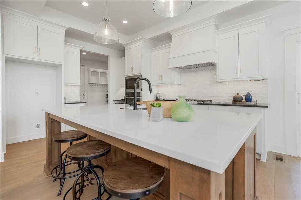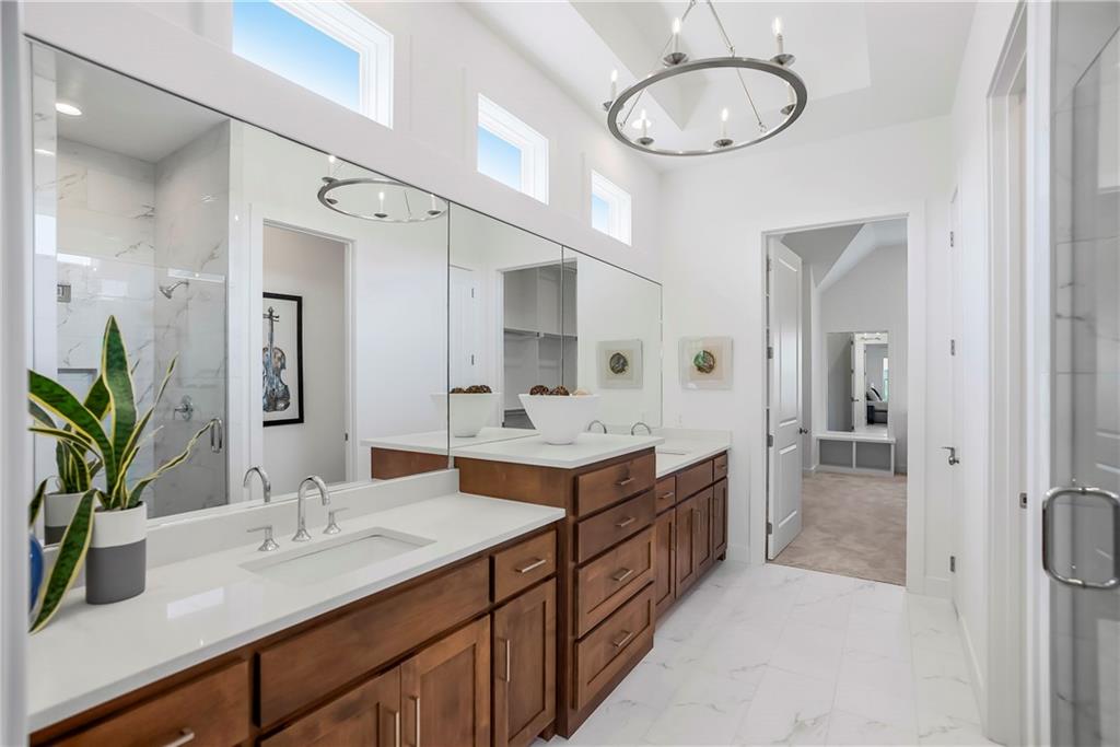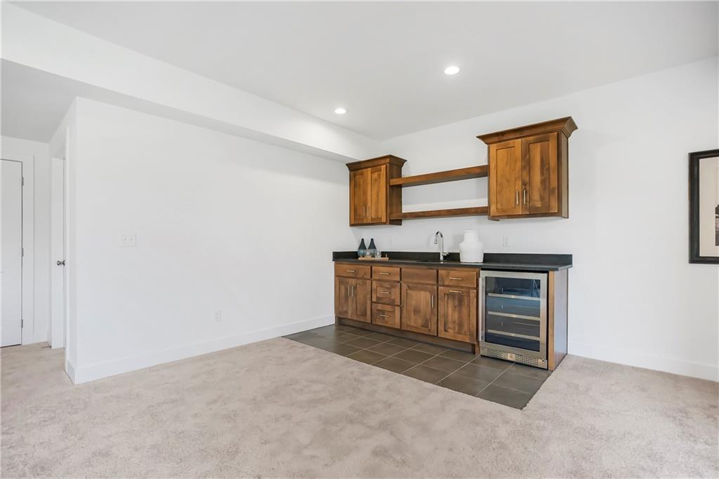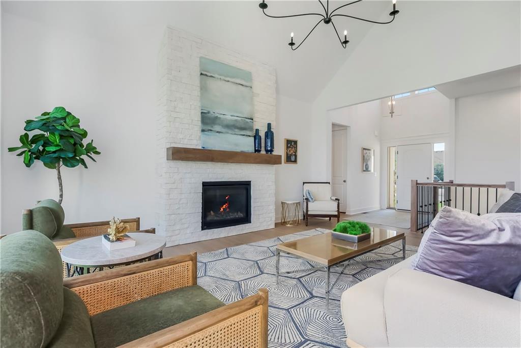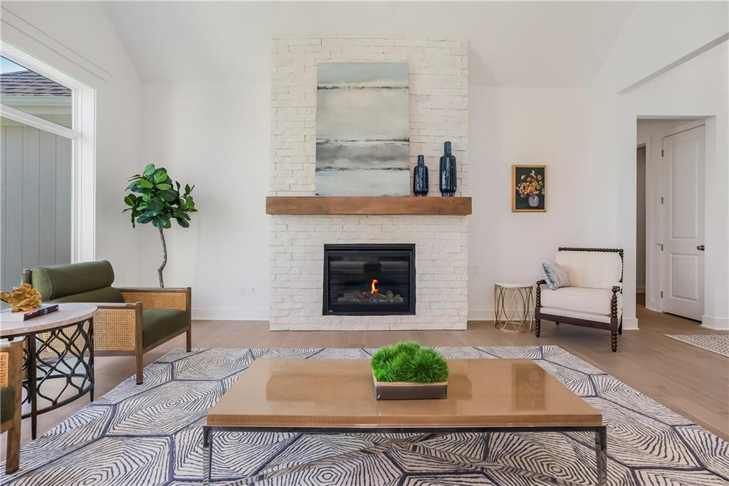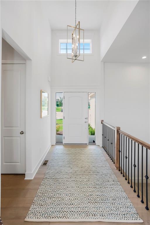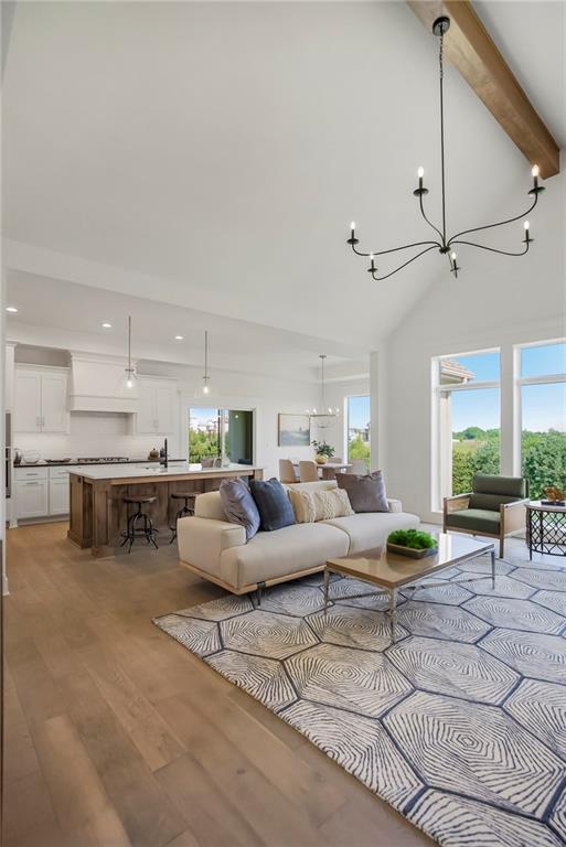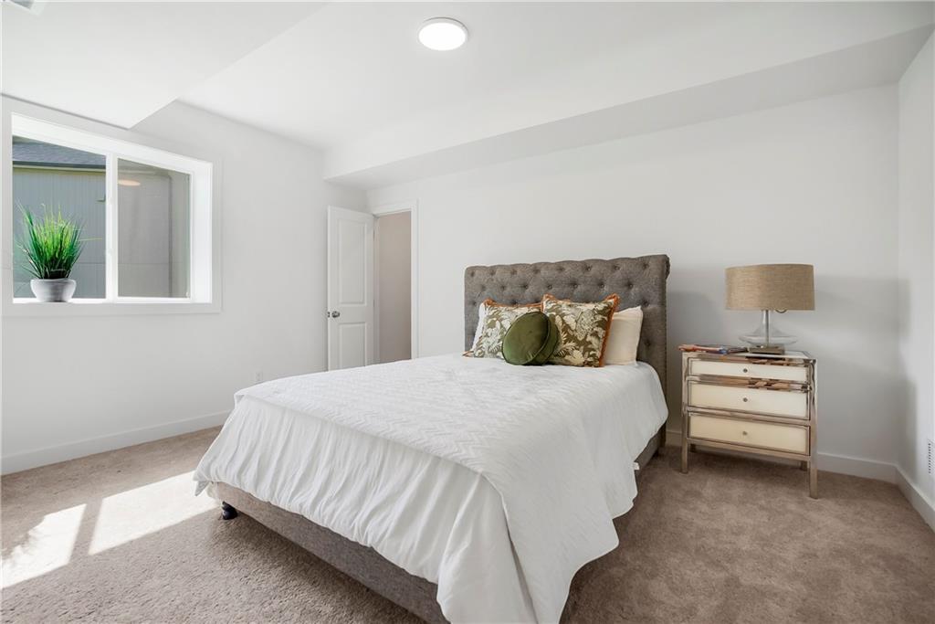 Price Improvement on this stunning reverse 1.5 story constructed by Rodrock Homes. Spectacular open floor plan with a vaulted ceiling in the great room, stone fireplace, and wall of windows across the back of the home, allowing an abundance of natural light in. The impressive kitchen features a large island, a walk-in pantry, and a drop zone off the garage. The guest bedroom is behind the kitchen and can be used for a functional study. The primary bedroom has a vaulted ceiling and a luxurious bathroom with dual vanities, a walk-in shower, and a huge closet with a built-in mirror. You will love the views from your covered lanai located off the dining area. The finished Lower Level has an abundance of natural light and a bar. There are two additional bedrooms and a full bath. This home is ideally located at the end of a cul-de-sac, creating a private retreat! Award-winning Blue Valley Schools are nearby. Riverstone Valley community amenities are scheduled to open summer of 2026.