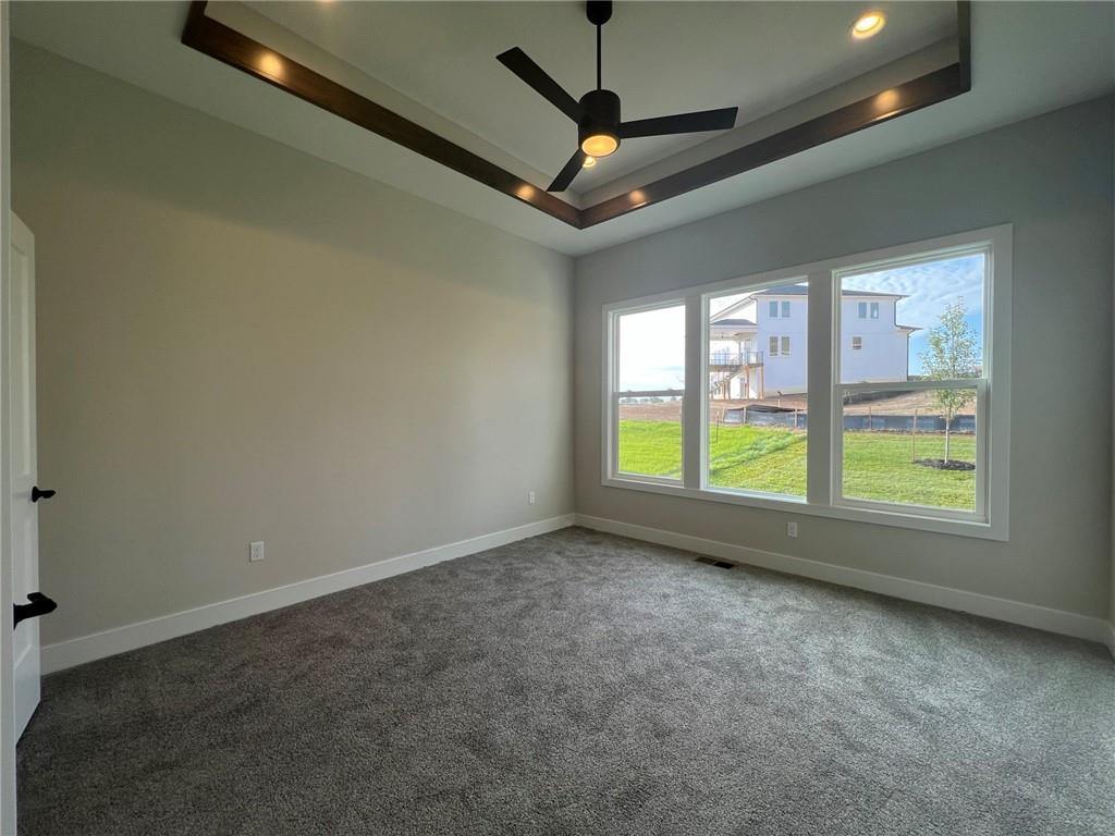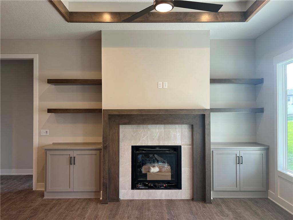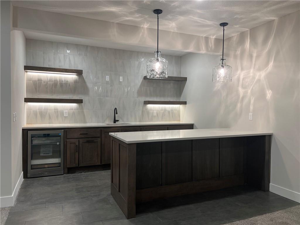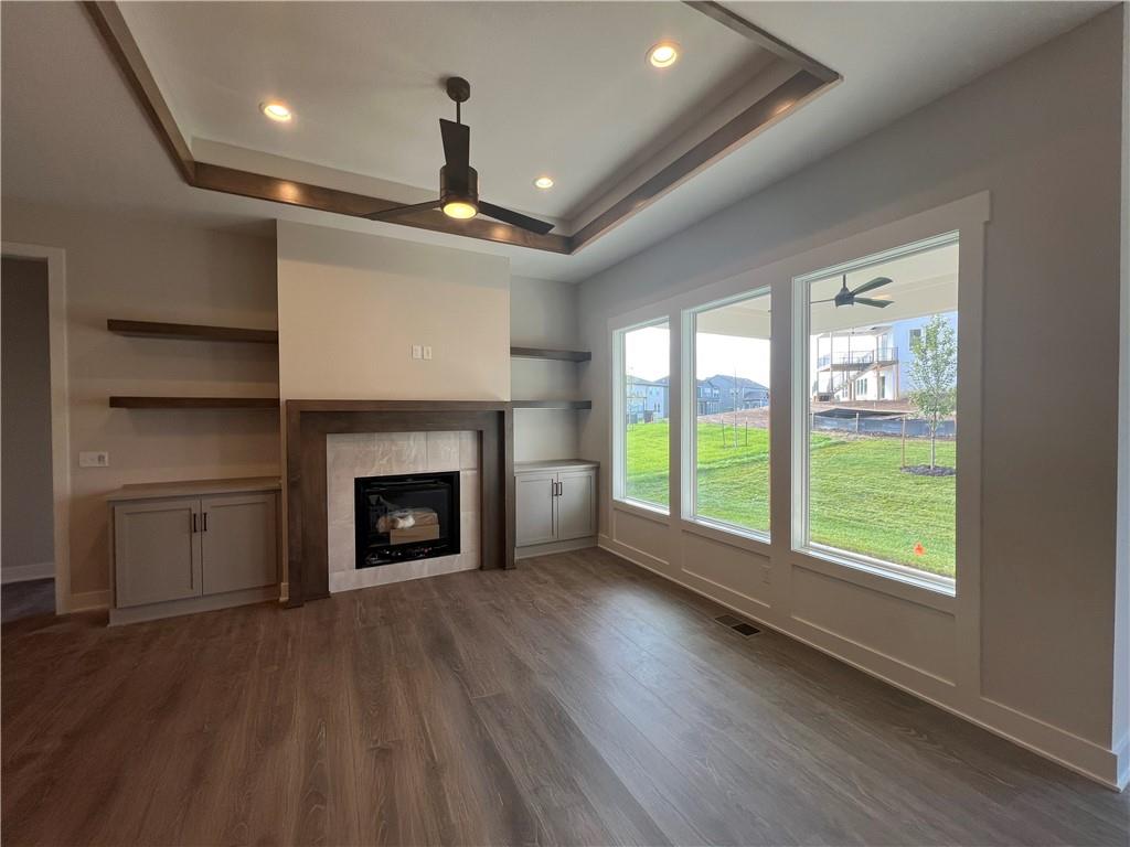 MOVE-IN READY! Welcome to the Monterey reverse ranch with a true 5 CAR TANDEM GARAGE! This beautiful home offers an open concept living room, with a floor to ceiling fireplace, built in cabinets, and 10' ceilings in the great room! Then enjoy the adjoining designer kitchen with ample quartz countertops, tons of storage in custom, soft-close cabinetry, and upgraded laminate flooring. The large primary suite is highlighted by a luxurious bathroom with a his & hers vanity, huge 10' high shower, and spacious walk-in closet. And not only is there another full bedroom and bathroom on the main level, but the basement offers a giant rec room with custom wet bar and two additional bedrooms and a full bath. Inspired Homes also includes extra deep garages, 8’ garage & front doors, irrigation systems, garage openers, gas range cooking with built-in SS GE appliances, low-e Pella windows and doors, custom wood cabinetry, tray ceilings, and so much more! Also located in the peaceful and sought-after Hilltop Farms neighborhood in Olathe, this property offers a lifestyle characterized by both comfort and convenience. Residents can indulge in community amenities including a zero-entry pool and sun cabanas, a large "tot-lot" playground and gaga ball pit, pickle ball courts, basketball and volleyball courts, local walking trails, and expanses of green space to enjoy. All sports courts are currently in, with the pool & playground opening Spring of 2026! Notably, shopping destinations and restaurants are just a short drive away, providing residents with the opportunity to relish in the charm of a countryside atmosphere while benefiting from the practicality of urban living right in Hilltop Farms.