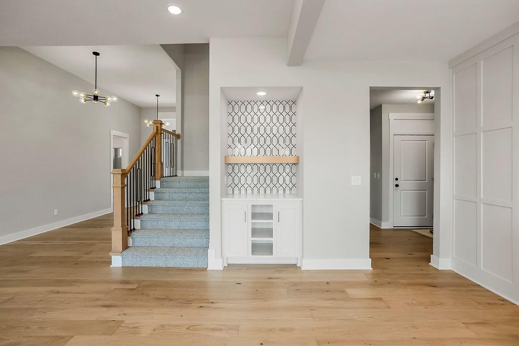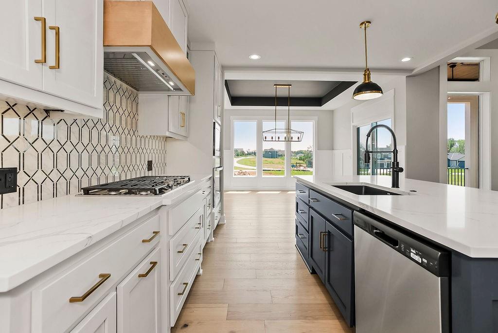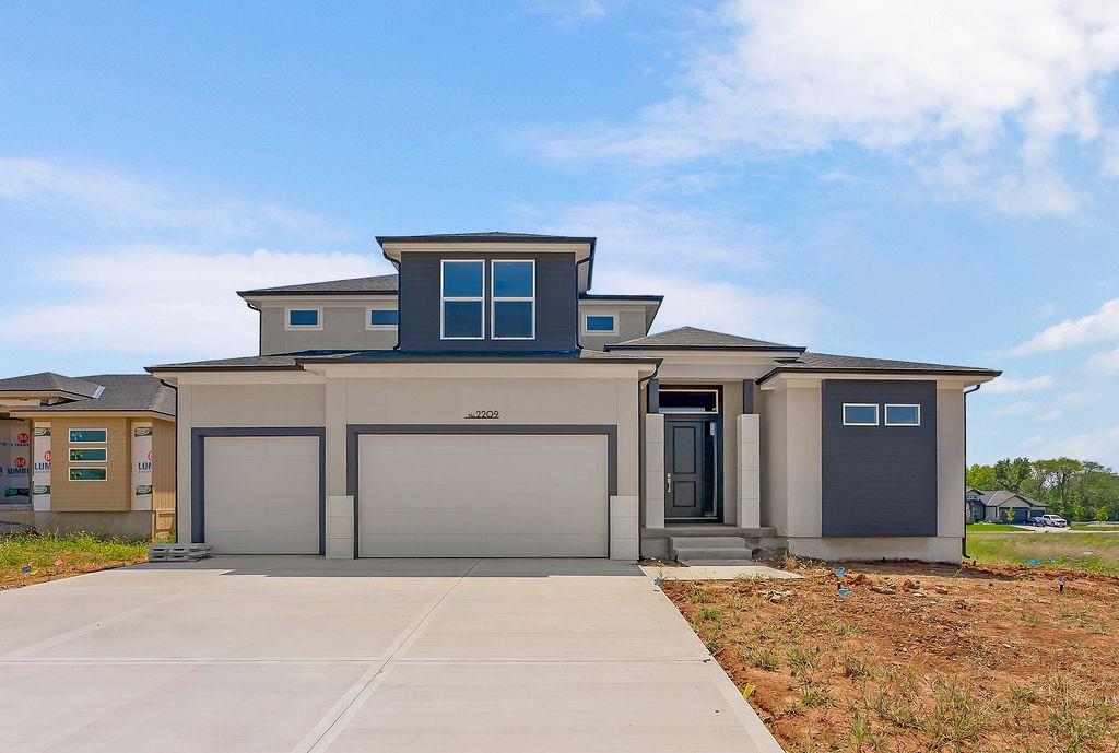 Move-in-ready Avalon II by Pyramid Homes in Sundance Ridge – Archer’s Landing offers a refined 1.5-story plan on a south-backing cul-de-sac homesite with sunset views, daylight lower level, and a covered patio ideal for year-round enjoyment. Thoughtfully crafted with elevated finishes, this home delivers both comfort and architectural character. A dramatic foyer and great room with 12’ ceilings, #2 white oak hardwood floors, gas fireplace, and artistic trim details create an inviting, light-filled main level. The gourmet kitchen features custom cabinetry, an oversized island, granite counters, stainless appliances, tile backsplash, and a walk-in pantry with a window. The box-ceiling breakfast room opens directly to the patio for seamless indoor-outdoor flow. The main-level primary suite offers a private retreat with a spa-inspired bath including a freestanding tub, dual-head tiled shower, SileStone vanities, and a custom walk-in closet. Energy-efficient construction features Low-E windows, foam-and-caulk seal, R-13/19 walls, R-49 attic, zoned HVAC with humidifier and dual thermostats, and a 50-gallon water heater. A fully sodded yard with irrigation completes the exterior. Located in Sundance Ridge, residents enjoy access to The Village with clubhouse, fitness center, resort-style pool, parks, and planned pickleball courts. Everyday essentials are close to home—~12–15 minutes to the Overland Park Arboretum, ~10–15 minutes to US-69 at 179th, ~12–17 minutes to Jinkies! Coffee, and ~11–14 minutes to BluHawk shopping and Price Chopper. A beautifully crafted home in a premier community—ready for immediate living.