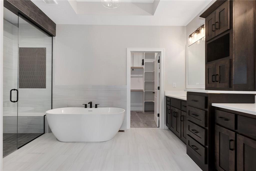 **MOVE-IN READY!** Welcome to the Catalina Reverse 1.5 plan by Crestwood Custom Homes! Fully loaded with options & upgrades. Quality & value you expect from Crestwood Custom Homes: Solid Birch cabinetry, extensive trim & ceiling details, Pella windows, all masonry stucco exterior walls, wood flooring & stunning quartz tops! Open concept plan with Kitchen, Great Room & Dining Room open to each other, tall ceilings, floor plan w/adjoining built-ins, kitchen island & walk-in pantry! Primary suite features a show-stopping, zero-entry, walk-in shower & bonus pull down clothes racks in spacious walk-in closet! Main floor also includes a versatile 2nd bedroom suite or Den & a covered deck! Finished lower level features 2 bedrooms, 1 bath, ample entertaining space & a full wet bar. 1st floor utility room adjoins primary closet & hall, battery back-up to sump pump, passive Radon pipe & sprinkler system. Photos updated on 12.2.2025. Home is NOW MOVE-IN READY!