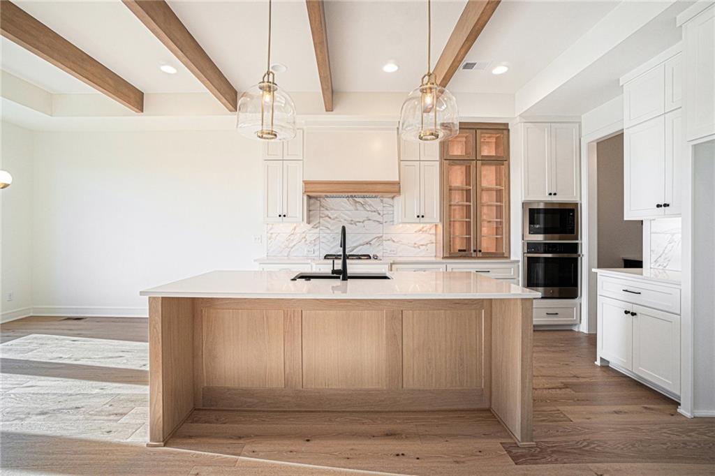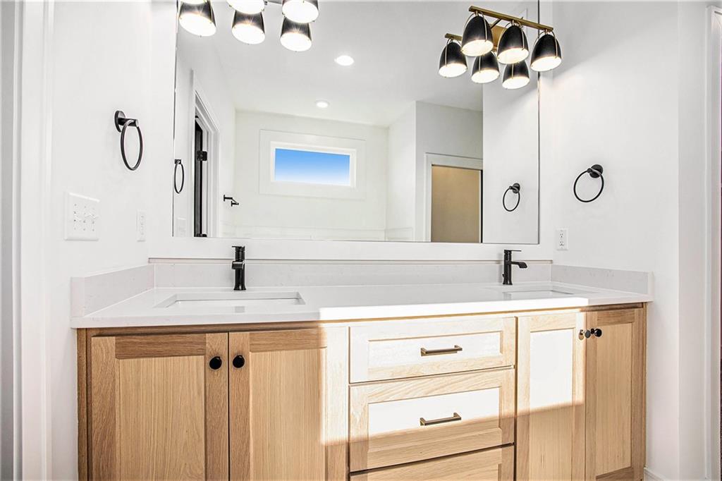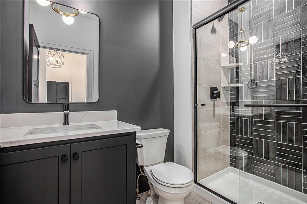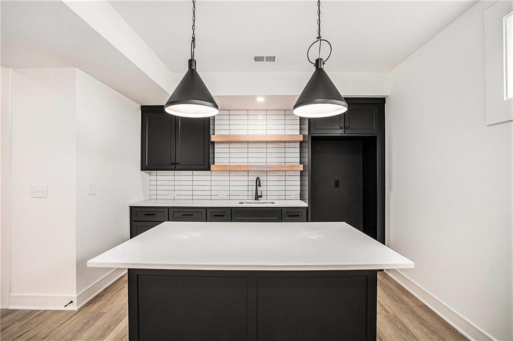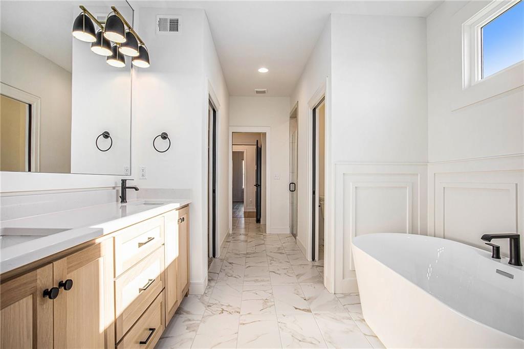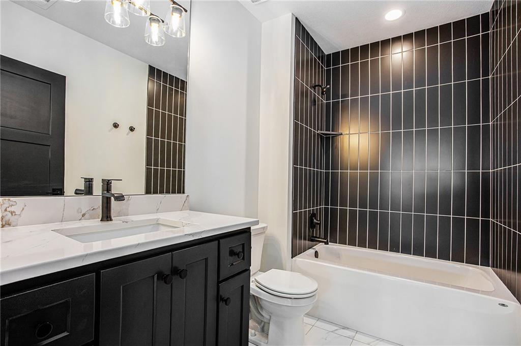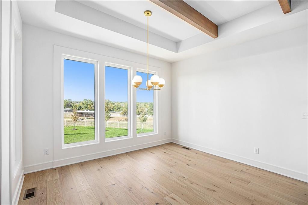 MOVE IN READY -"The Bayberry I" by JFE Construction, situated on Lot 90, is a Reverse 1 ½ Story residence featuring four bedrooms and three bathrooms. Upon entry through the impressive 8-foot double doors, residents are greeted by a spacious great room showcasing a vaulted ceiling, floor-to-ceiling fireplace, and expansive windows that create an open atmosphere. Large sliding doors seamlessly connect the great room to a covered deck equipped with a stone fireplace, offering an ideal space for entertaining. The kitchen is thoughtfully designed with a substantial island finished in quartz, stainless steel appliances, and a generous pantry that includes a built-in coffee bar. The primary ensuite features a free-standing soaker tub, double vanity, zero-entry shower, and a walk-in closet. A secondary bedroom or office is located on the main level. The finished lower level provides a family room, wet bar with island, two additional bedrooms, and a full bathroom. Enjoy access to the covered deck from the walkout lower level. Minutes from Blue Valley K-12 schools. Taxes are estimated. THIS HOME IS MOVE IN READY.