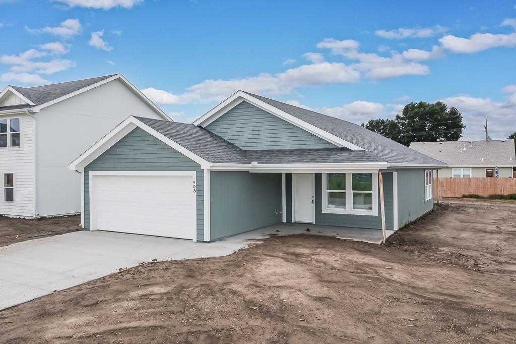 BRAND NEW ELEGANCE AWAITS IN THIS 3BR RANCH BEAUTY! Step into modern comfort with the "Robin" floor plan, a brand-new 3-bedroom, 2-bath ranch designed for contemporary living. A covered porch at the front plus another at the back welcome you into an inviting open floor plan. The spacious kitchen boasts an island, granite counters, and a convenient pantry, setting the stage for culinary delights. The large living room seamlessly connects with the dining area and kitchen, creating a perfect space for gatherings. The Master suite, a haven of luxury featuring a plush master bath with double vanities, granite counters, a separate shower and tub, and a roomy walk-in closet. Offering a fresh start for a fortunate homeowner. Pictures are similar to what home will look like finished. Taxes and room sizes estimated. Seller is a licensed real estate agent in KS and MO.