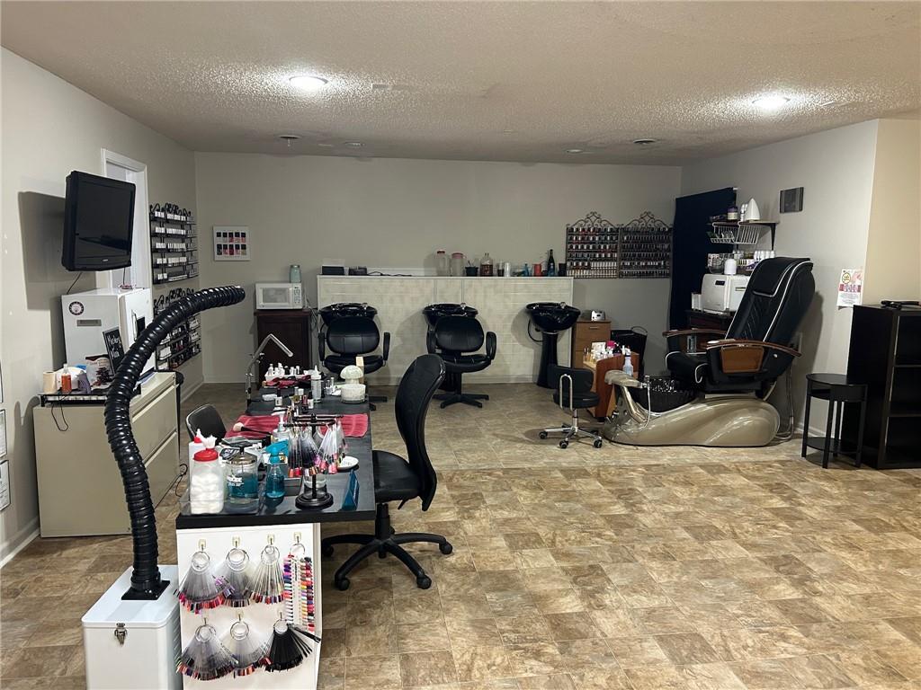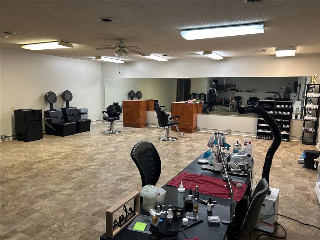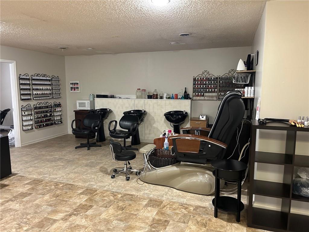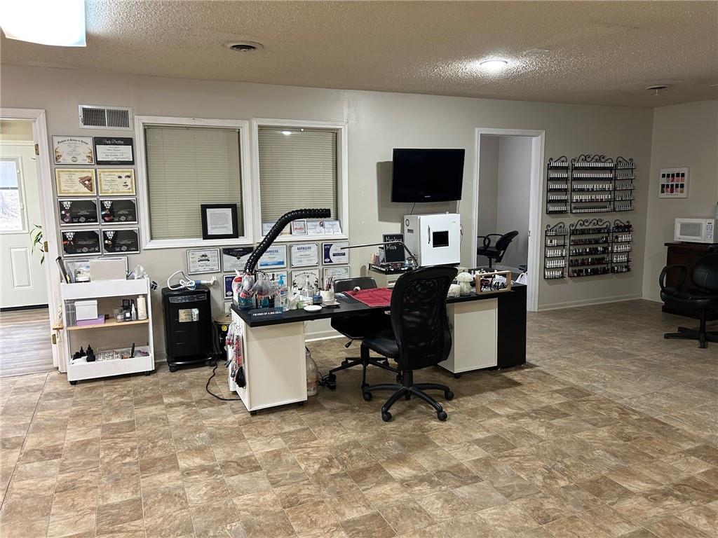 Prime location and already set up for a salon! Large open workroom with plenty of space for nail desks, hair styling stations, etc. Two private rooms ideal for massages, facials, etc, or an office. Great access from 152 Hwy, 291 Hwy, Kansas St and I-35, located inside Liberty city limits.