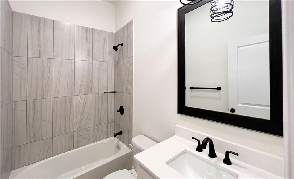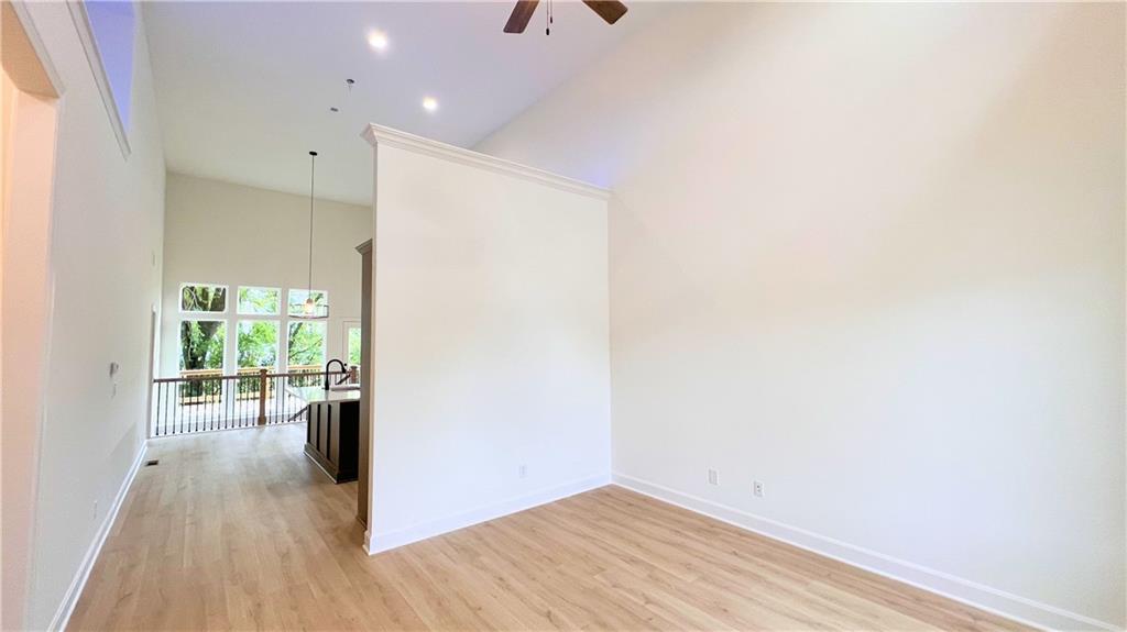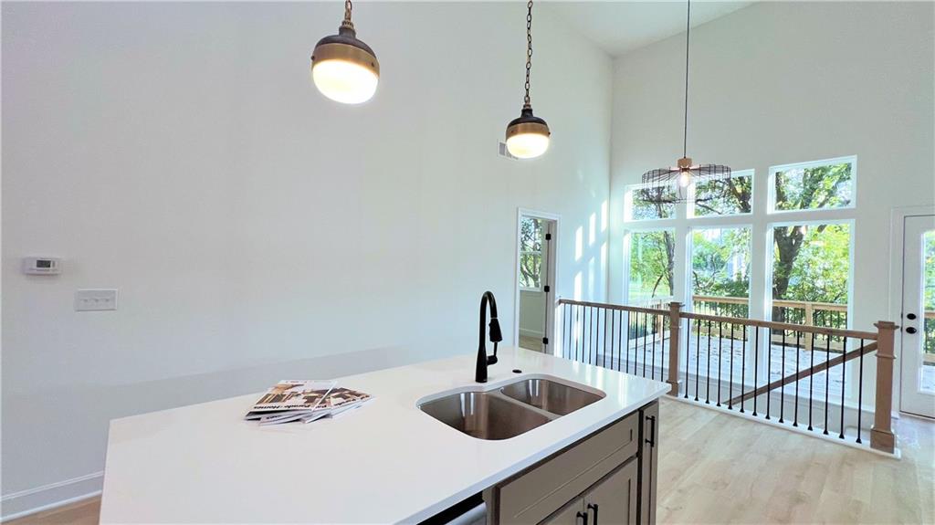 Walk into this home and take in the spacious, open floor plan! Ceilings nearly 18 feet tall, a deep, wooded backyard, a main floor master bedroom, and so much more! Outside, so many elegant touches: stone accents, underground sprinklers, a covered porch and beautiful landscaping (when finished). Home interior is not yet finished, but when done, it will have quartz countertops, engineered wood floors, designer finishes and fixtures. However, there's still time to pick your finishes and fixtures on to customize this home and make it your own! Listing agent has ownership interest in the home. Pictures and virtual tour are of a similar home.