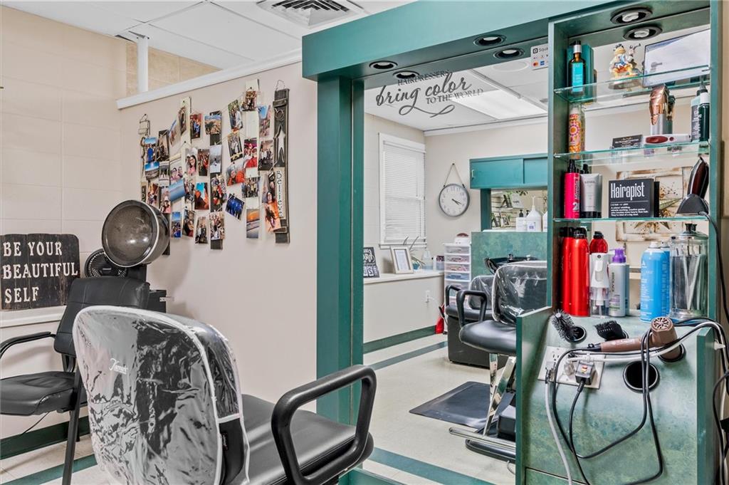 LOCATION LOCATION LOCATION! INCREDIBLE TURN KEY BEAUTY AND SPA BUSINESS! 24 YEARS in BUSINESS! with 6 cubical areas for hair salon and 4 tanning rooms also a larger room for massage therapy and sauna or as simple as make it your office & space to offer PROM TUX RENTAL. This beautiful building is 3200 sq ft and includes a laundry/break room & 2 bathrooms.