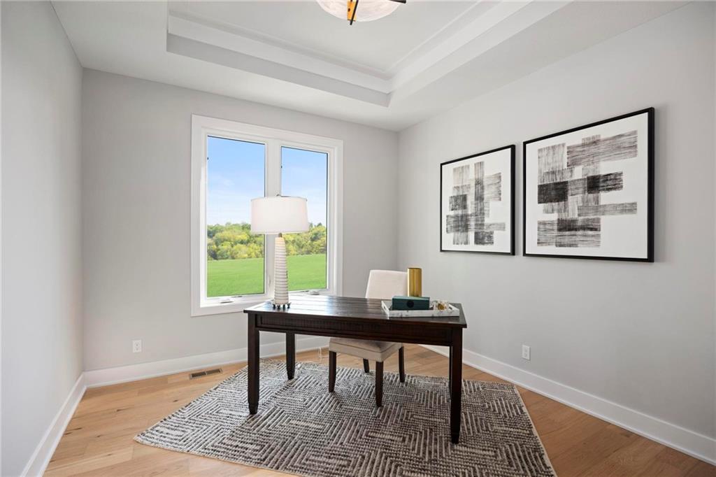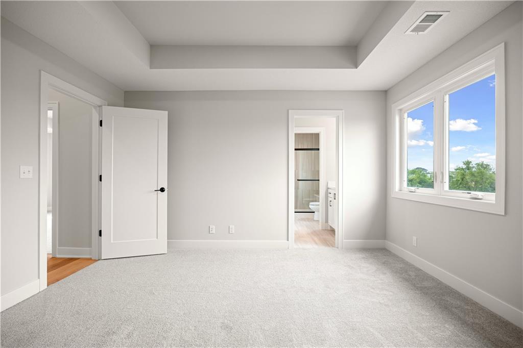 Sanctuary LOT 18 - The Regency II by J.S. Robinson Fine Homes is a stunning 1.5-story residence situated on a walkout cul-de-sac lot that backs to treed greenspace. Construction costs came in favorably, so the builder is passing along the savings by a major Price Improvement!! Step inside this exquisite home and be greeted by its impressive design and impeccable craftsmanship. The main level boasts a magnificent owner's suite complete with a spa-like bathroom, walk-in closet, and a private laundry area. The open floor plan seamlessly connects the gourmet kitchen to the rest of the living space, making it perfect for entertaining guests. Custom cabinets reaching up to the 10-ft ceiling provide ample storage, while the upgraded countertop allowance ensures a touch of luxury in every detail. Hardwood floors add a touch of warmth. The home offers a main-level flex room that can be used as a home office or a versatile space to suit your needs. Upstairs, you'll find three additional bedrooms, each with its own attached bathroom. Additional 2nd Floor laundry! Plus, an approximate 17'x20' recreational loft offers endless possibilities for relaxation and recreation. Welcome to another stunning Matt Adam Development new home community. The Sanctuary is laid out to protect the natural landscape, with homesites among the most beautiful in the area. In addition to the nature trails and sparkling creek winding its way through the community, residents will enjoy neighborhood amenities such as the Resident’s Club with indoor spaces and outdoor entertainment area, and a separate zero-entry pool with a sundeck to lounge the summer away. Two pickleball courts will provide hours of fun exercise for the everyone in the household! Located in South Johnson County across the street from award-winning Blue Valley Schools. Square footage and taxes are estimates. ***Finished photos are of a similar model, pricing, upgrades and finishes may vary from model shown.***