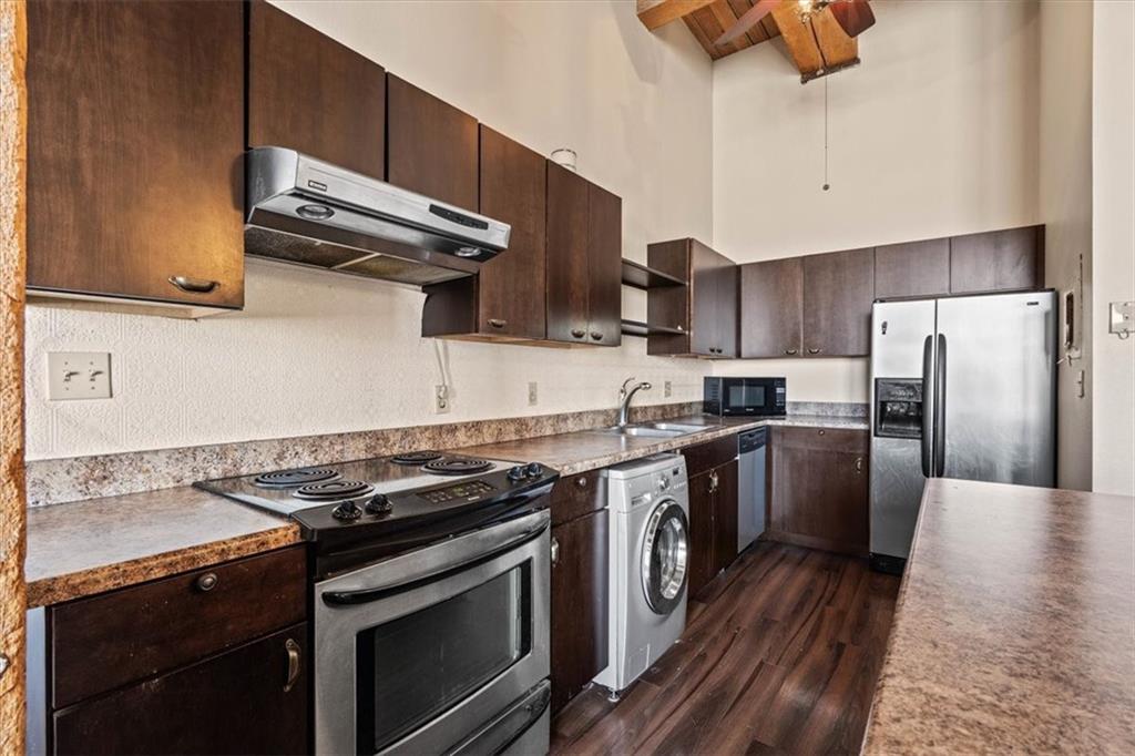 FOR SALE OR LEASE Welcome to that loft—the one with soul, style, and a layout that makes every square foot count. Set in the historic Garment District, this one-bedroom impresses with exposed brick, a striking tongue-and-groove ceiling, and a rooftop terrace that reminds you why downtown is the place to be. And the location is fantastic! Grab morning coffee, take a midday trip to the City Market, or enjoy late-night cocktails—everything is just steps away. Comfort and efficiency define the living area, which flows into a well-appointed kitchen with modern conveniences. Expansive windows offer plenty of natural light and wide-open views, while the bedroom provides privacy without sacrificing the airy, industrial vibe. A sleek bathroom ties it all together with clean, contemporary finishes. Soho Lofts delivers great amenities, including a rooftop patio, full gym, sauna, yoga room, club room with a pool table, extra storage, and secure garage parking available to lease. As a primary residence, it’s a chic retreat in a walkable neighborhood surrounded by dining, shopping, and entertainment. As an investment, it boasts strong rental potential with easy streetcar access and proximity to the Power & Light District and the River Market. Either way, it’s an opportunity you don’t want to miss.