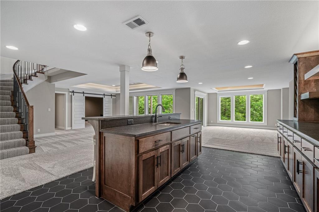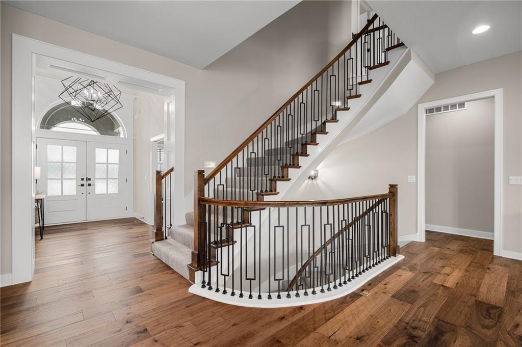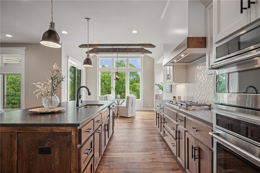 You can 'Be Home for the Holiday' at a New Price and Exceptional Opportunity Discover the perfect balance of luxury, comfort, and convenience in this nearly new James Engle Custom Berkley II 1.5-Story, tucked away on a private cul-de-sac on a lush, treed lot in the sought-after Timber Rock community. Step inside to a light-filled main level where the chef’s kitchen impresses with a custom range hood, upgraded counters, stainless steel appliances, prep kitchen, and a walk-in butler’s pantry. The open layout flows seamlessly into the great room, creating the ideal setting for everyday living and entertaining. The primary suite is a true retreat with a spa-like bath, custom walk-in closet with built-ins, and private access to the laundry. Upstairs, find three spacious bedrooms—each with its own en suite bath and walk-in closet—along with a bright loft for work, play, or relaxation. The finished lower level is designed for fun, featuring a custom bar, theater room, and full bath. Step outside to enjoy peaceful backyard views from the oversized covered deck. Living in Timber Rock means access to resort-style amenities including a pool, clubhouse, playground, and scenic walking trails—all within the award-winning Olathe school district (Manchester Park Elementary, Prairie Trail Middle, and Olathe Northwest High). Don’t miss this incredible home, now offered at an unbeatable new price!