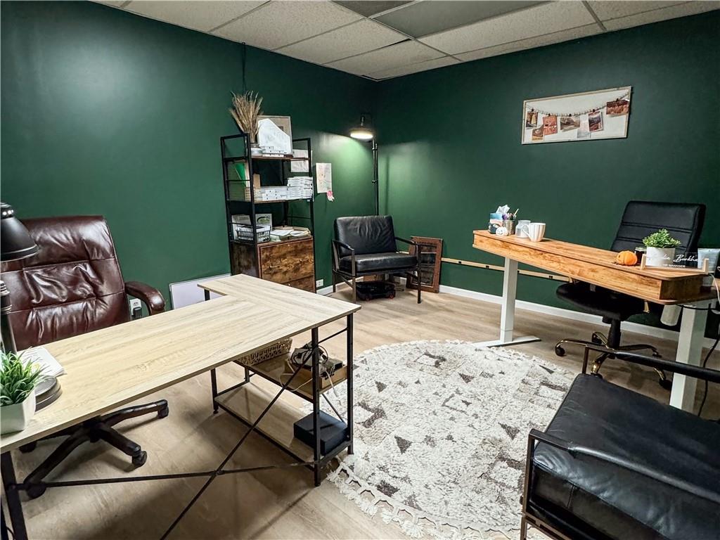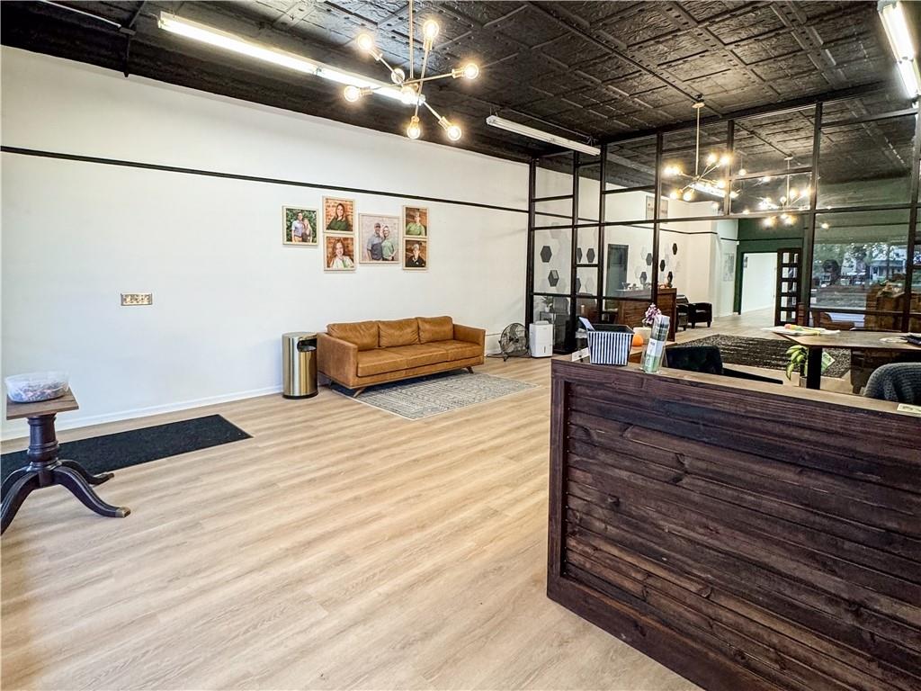 Beautiful remodeled commercial building! Property consists of two commercial office spaces and two residential units upstairs. One of the commercial spaces is currently being rented by the owners business while the other side is vacant and ready to be leased or moved into by new owners business. The two residential units upstairs are fully rented. Property has new floors, new paint, updated bathrooms, new custom glass wall dividers and so much more!