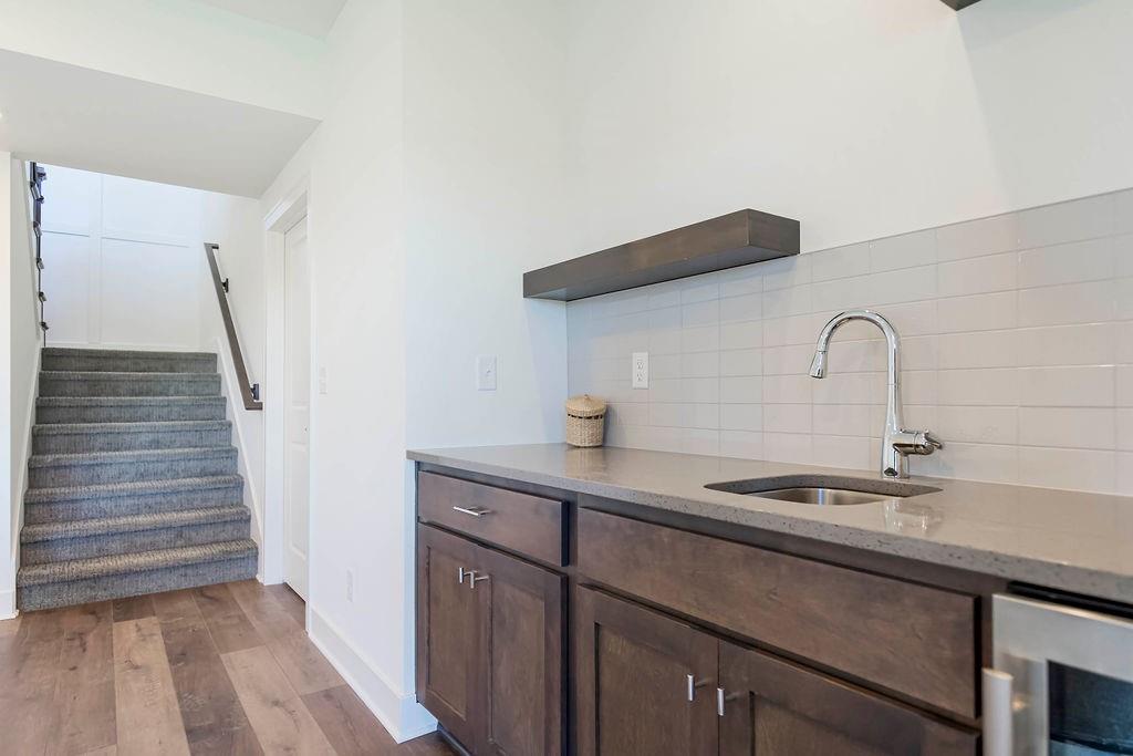 Beautiful Hudson Plan by Rodrock Homes. This home features the Primary Suite and a second bedroom on the main level plus 2 bedrooms in the lower level. Although this plan has spacious rooms, it has a cozy feel with plenty of room for dining and entertaining. The kitchen features beautiful cabinets, a large walk-in pantry, island with quartz countertops and the range hood is vented to the exterior. The primary and main floor baths have quartz/granite countertops. The lower level adds light and versatility to the recreation room and bedrooms. Taxes and square footage are estimated. The neighborhood features a large swimming pool with fountain, play area, 3.8 acre lake stocked for fishing with recreational trails around the lake. Convenient highway access to all points in Kansas City.