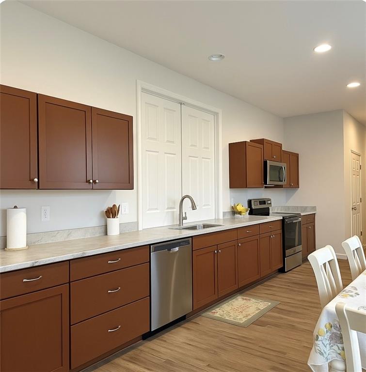 Located between Basehor and Lansing with over an acre of frontage on 7 Hwy. Wheelchair accessible throughout this lovely 3-bedroom, 3-bath home located just south of Lansing Ks and minutes from VA Medical Center in Leavenworth. Four-year-old home with full, unfinished walkout basement. Home has large 28' x 28' detached garage. Also, a cute she-shed with loft in fenced back yard of almost a full acre. New wheelchair ramp to front door and three beautiful decks with one just off the master bedroom. Home has 10 ft ceilings throughout. Gas fireplace in extra-large 36' x 21' great room which could conveniently be used as second living area with private entrance and beautiful back deck. All doors throughout the home are wheelchair accessible 36". Lovely home waiting for your personal touch.