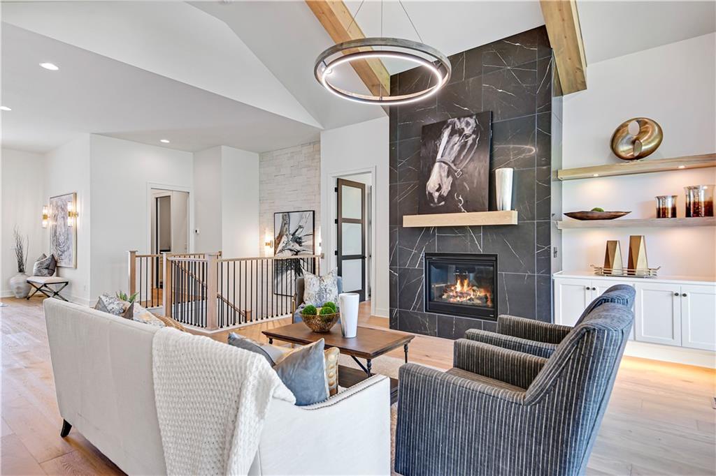 The Willow II Model by JFE Homes –MODEL HOME NOT FOR SALE!! A TRUE SHOW STOPPER! From the moment you arrive, The Willow II captivates with its stunning curb appeal—a sleek double glass front door and modern garage door with full tinted glass panels. Inside, soaring 10’ ceilings on the main level, 8' doors, walls of windows, and a vaulted great room with striking beams create a breathtaking first impression. A large sliding glass door seamlessly extends your living space to the covered patio with a stunning stone fireplace—perfect for relaxing or entertaining year-round. The chef’s kitchen is a dream, featuring custom cabinetry, an oversized island, quartz countertops, a butler’s pantry, and premium stainless steel appliances—blending function and style effortlessly. The primary suite is a private retreat with a decorative wood accent wall, vaulted ceiling, and spa-like ensuite. Indulge in the free-standing soaking tub, walk-in shower, and oversized closet that conveniently connects to the laundry room. Downstairs, the lower level is an entertainer’s dream! A spacious media area, a wet bar with space for a full-size fridge and microwave, plus two additional bedrooms and a full bath make this space ideal for hosting. Don't forget about the stunning wine wall enclosed with glass—a true showpiece! The full-size window well allows an abundance of natural light, creating a bright and inviting lower level. The backyard is finished off with a retaining wall and additional trees ( Price does not reflect those items). Other items not in price - Epoxy garage floor and painted floor in unfinished basement. Located in Canyon Creek Forest, a maintenance-provided community, you’ll enjoy a carefree lifestyle—no more mowing, weeding, edging, or snow removal—just more time for what truly matters. This is a model home ** not for sale ***