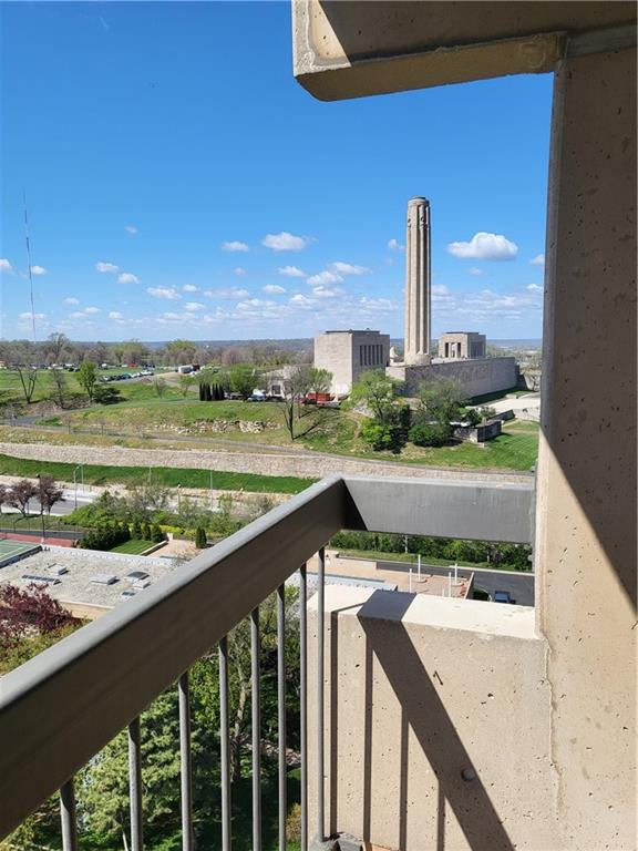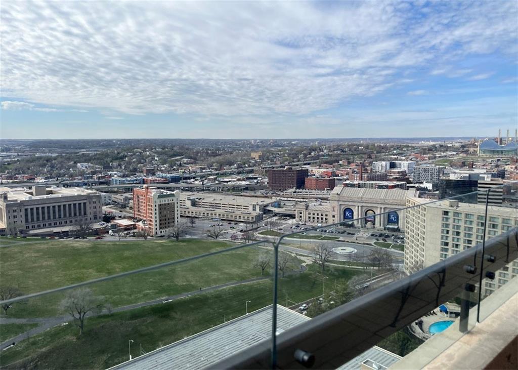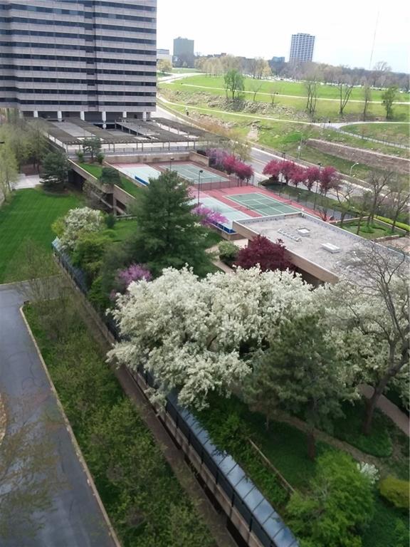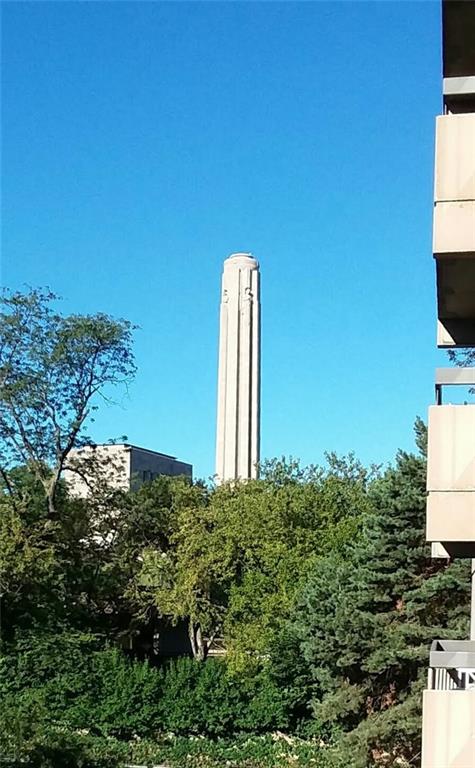 Stunning Liberty Memorial View from the Balcony. Easy convenient living in Crown Center, restaurants, entertainment and street car access. 24/7 Concierge, elegant lobby and party Room. Fully equiped excerise room, add'l laundry facility, Library and storage Locker. The 4th Floor party room opens onto the beautiful 2 acre garden that includes 2 grilling stations, water fountain. Olympic size salt water pool, handicap accessible. Club house available for parties. Gorgeous 28th Floor observation deck for sunsets and gatherings.