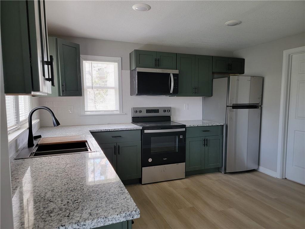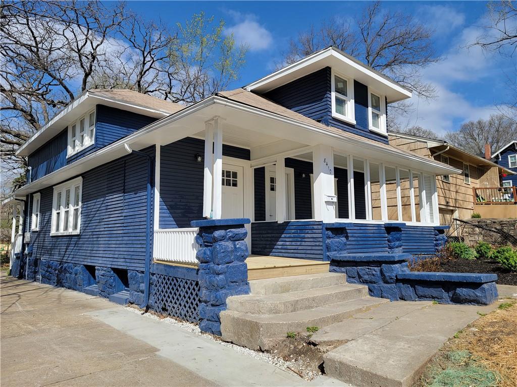 Classic Charm Meets Modern Luxury in KC Beautifully renovated 4-bed, 2-bath bungalow in the Center school district. Features gleaming hardwood floors, granite countertops, and stainless steel appliances throughout the spacious kitchen with convenient main floor laundry. Enjoy generous bedrooms with walk-in closets and off-street parking. Relax on the large front porch perfect for morning coffee or evening gatherings. Located in Kansas City's Urban Renewal area with valuable tax abatement advantages. The perfect blend of character and contemporary comfort in a prime location!