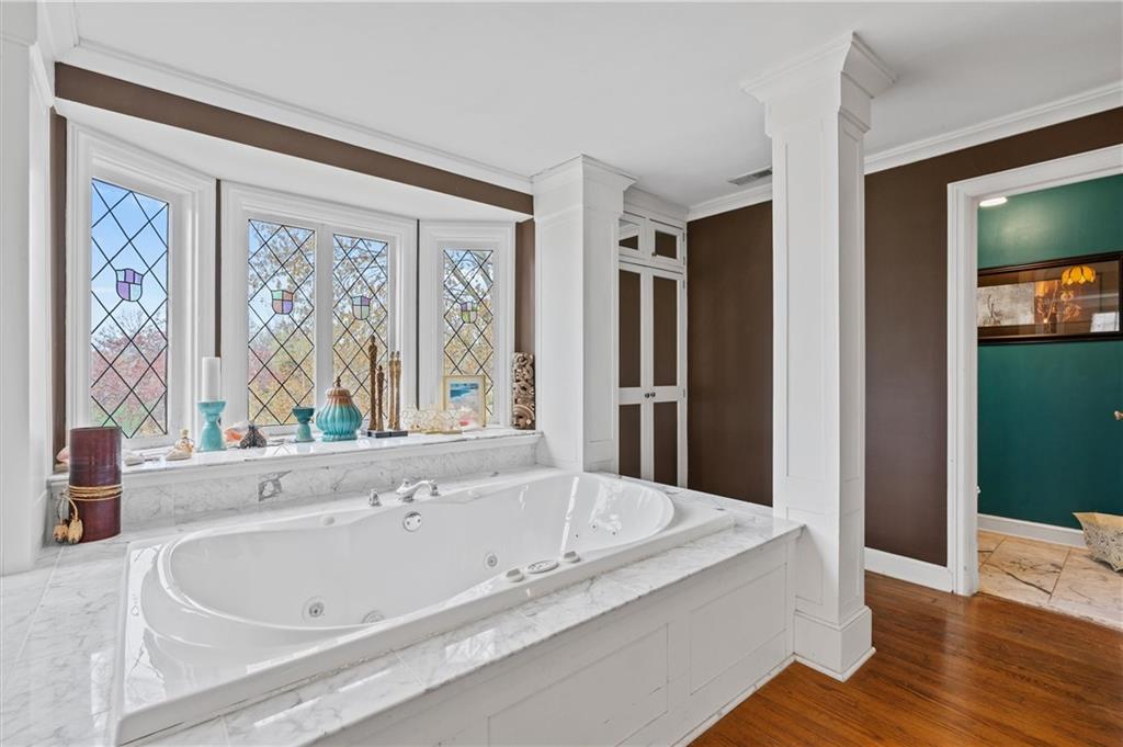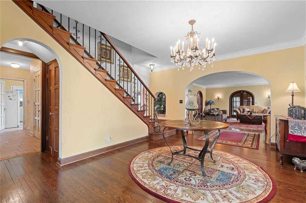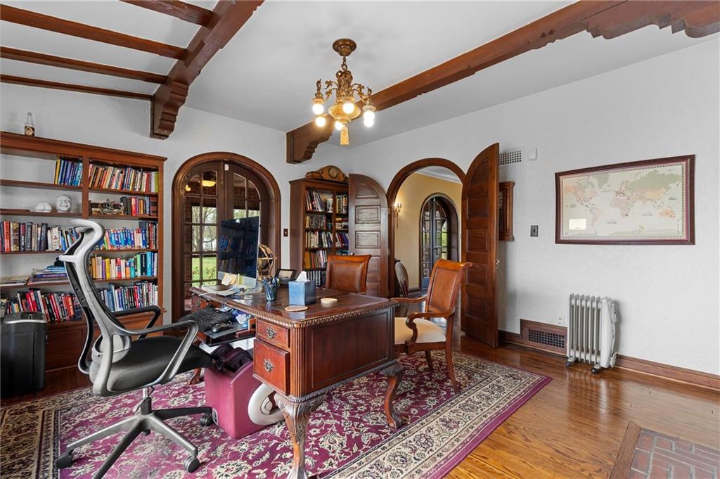 Nestled on a sprawling 6-acre corner lot in Excelsior Springs, this historic English Tudor-style estate offers a rare blend of timeless character and modern luxury. With over 6,000 sq ft of living space, the home boasts original architectural details at every turn—from a grand entryway and elegant woodwork to multiple staircases (including a service staircase to the butler’s quarters) that harken back to an era of gracious living. This 4-bedroom, 6-bath residence (3 full, 2 half, plus a main-level powder room) features a very large master suite as a tranquil retreat, while the additional bedrooms are generously sized and filled with charm. Modern comforts are thoughtfully integrated throughout, including an updated gourmet kitchen that retains its vintage elegance. The original butler’s quarters adds flexibility, perfect as a private guest suite or home office. A standout feature is the expansive attic—over 1,600 sq ft of untapped potential — truly a blank canvas ready to transform into extra bedrooms, a studio, or a playroom. Downstairs, the finished basement is an entertainer’s dream, complete with a pub-style wet bar, open recreation space, and ample storage—ideal for game nights and casual gatherings. Outside, the 6-acre grounds form a park-like oasis of lush landscaping and mature trees, offering both grand spaces for outdoor entertaining and secluded corners for peaceful relaxation. Whether hosting summer barbecues or enjoying a quiet morning coffee with nature, the possibilities are endless on this private estate. 8 Orchard Place seamlessly marries historic elegance with modern comfort. With its unique architectural character, luxurious updates, and room to grow, this one-of-a-kind Tudor estate invites you to own a piece of Excelsior Springs history. Don’t miss the chance to experience the grandeur and charm of this extraordinary property—your dream home awaits.