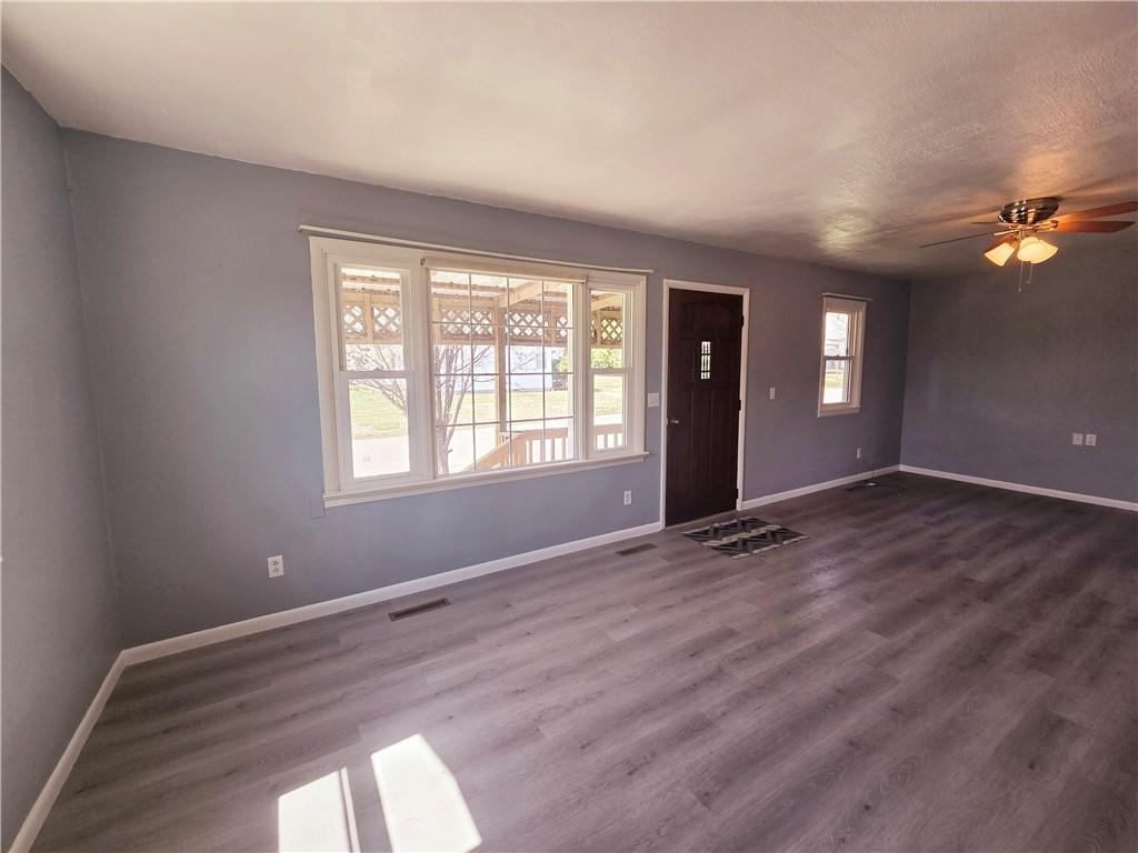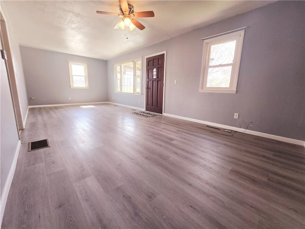 The house features two bedrooms on the first floor, a laundry area, and one bedroom in the basement that includes a kitchenette and another full bathroom. The heating and cooling systems were updated in 2021, and the bathroom was renovated in 2025. Windows have been updated and the roof was replaced in 2012. The back deck and screened-in patio create a serene oasis, with no neighbors on one side and a beautiful view of a peaceful pasture. Additionally, there is a detached one-car garage and a shed in the backyard for your outdoor belongings. The property is situated on a dead-end road, ensuring privacy and tranquility. All appliances will remain with the house.