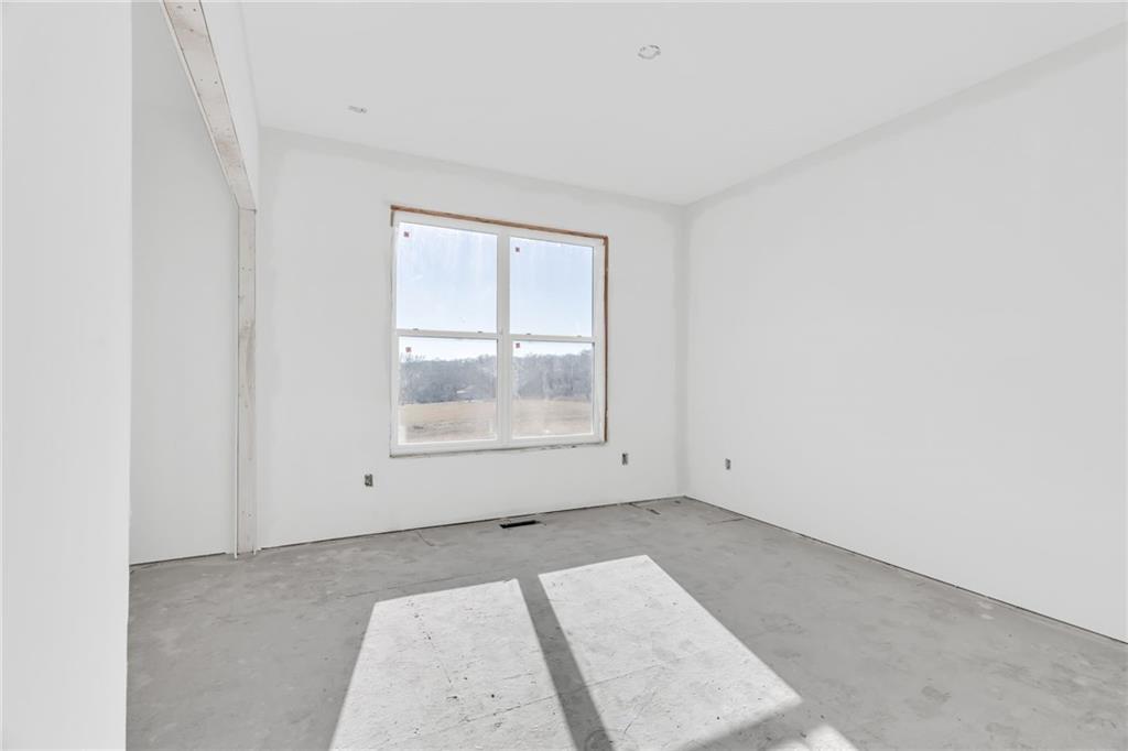 This luxury custom craftsman-style home is thoughtfully designed for elegance and refined everyday living. The free-flowing layout is positioned on an elevated .77-acre lot, offering views of the surrounding bluffs. The main level spans over 3,000 square feet and showcases oak floor in the main area, a chef’s dream kitchen appointed with premium Viking appliances, connecting to a dramatic vaulted great room anchored by a grand fireplace that truly embodies classic craftsman-style character. The home also features a formal dining room and an inviting eating nook. The primary suite provides a serene retreat, while three additional bedrooms and three full bathrooms. A fifth bedroom on the upper level offers a quiet, private space—ideal for a home office, guest room. Exquisite craftsmanship is evident throughout, highlighted by tongue-and-groove ceilings that flow from the grand entry through the vaulted great room and extend onto the expansive covered deck, supported by stunning cedar beams. The home also includes an additional 2,735-square-foot walkout basement with a covered patio, stubbed for a second kitchen and 2.5 bathrooms, offering options for multiple bedrooms, a private guest suite, or multi-generational living. There is an option to fully finish the basement to suit your lifestyle. Outdoor living is elevated with both a covered front porch and covered rear deck, perfect for entertaining or enjoying peaceful views. This lot allows for endless possibilities, including a luxury pool, outbuilding, or custom outdoor entertaining space. An oversized three-car garage and extended driveway provide ample off-street parking. Ideally located with convenient access to the Kansas City metro area and Fort Leavenworth, this property delivers luxury, privacy, and accessibility in a truly exceptional setting.