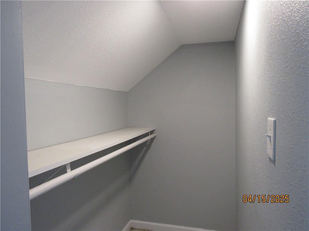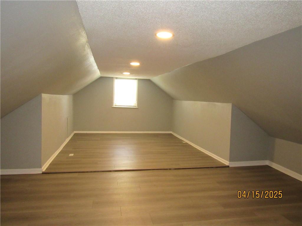 Additional living space featuring recessed lighting, lofted ceiling, wood finished floors, baseboards, and a textured ceiling
