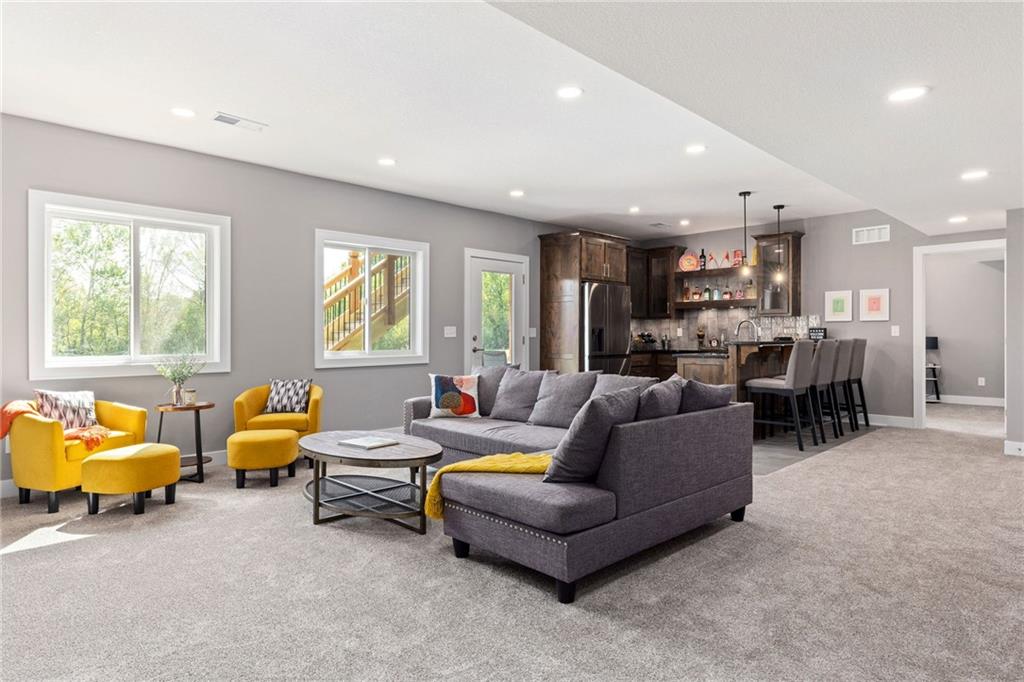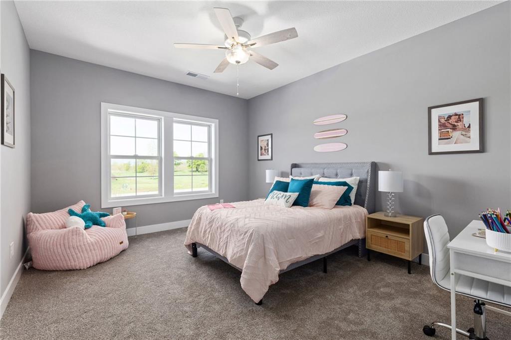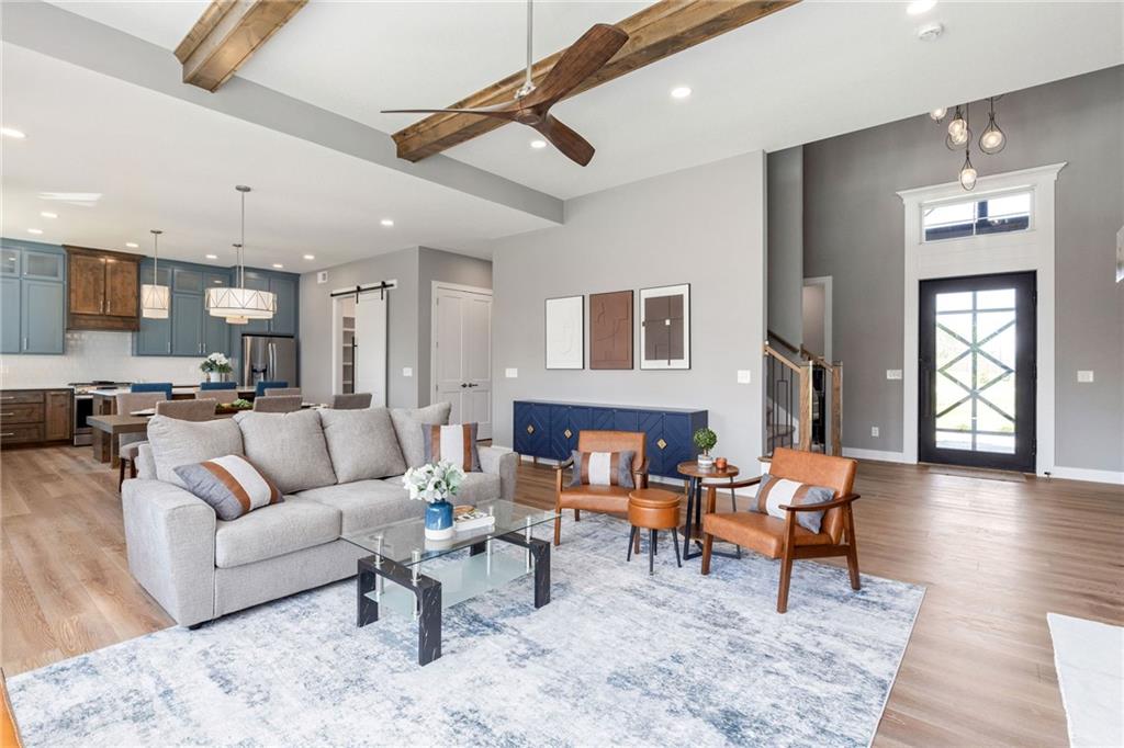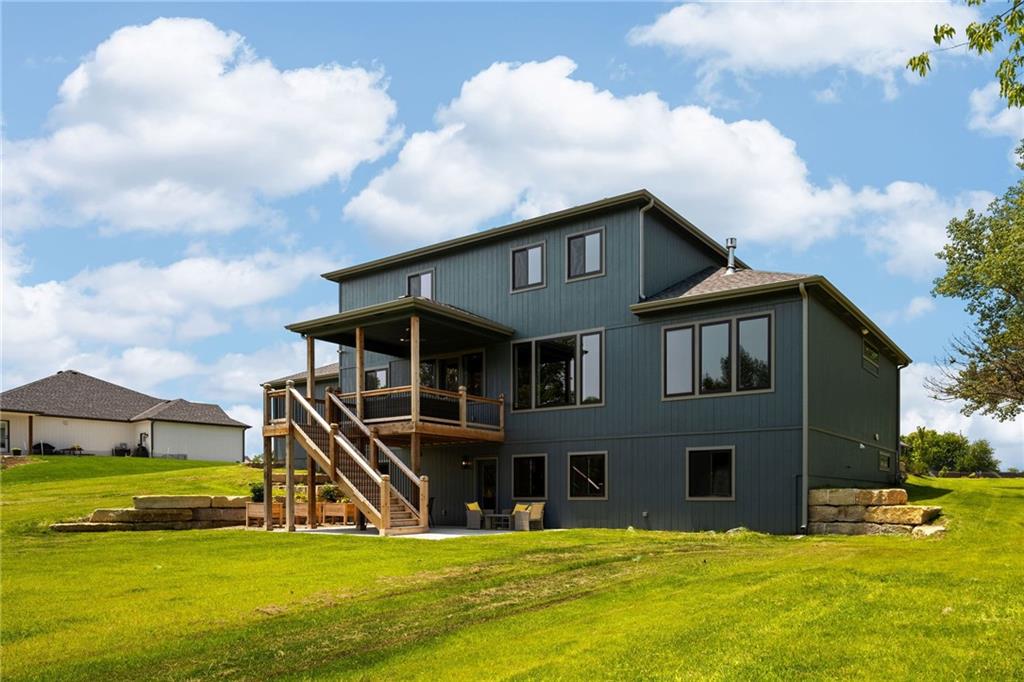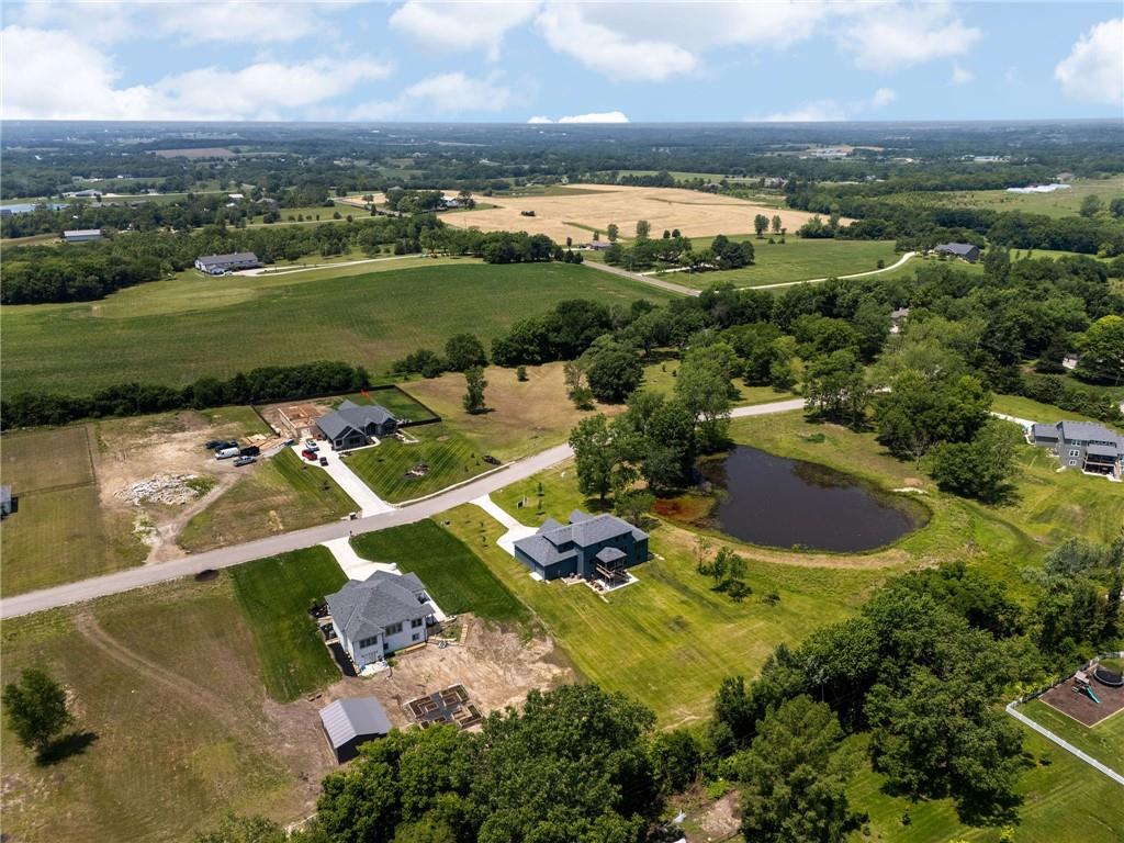 **PARADE OF HOMES WINNER!**Stunning new 1.5 story Cottonwood plan by PCDI Custom Homes. Located on 2.5 Acres with a pond! Featuring 6 bedrooms, 5.5 baths, a pocket office, finished walkout lower level with bedrooms and wet-bar plus a bonus room perfect for a home office or exercise room. Upscale finishes in the main level master bedroom, quartz counters throughout, stainless appliances, the level of detail is a must-see! Home also features an extra large 5 car garage with room for a lift too! Perfect spot for a pool out back as well! Paved roads and Basehor-Linwood Schools! Only 2.5 Miles to the new grocery store!