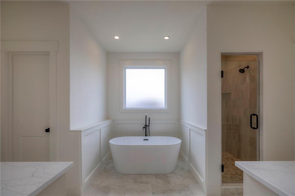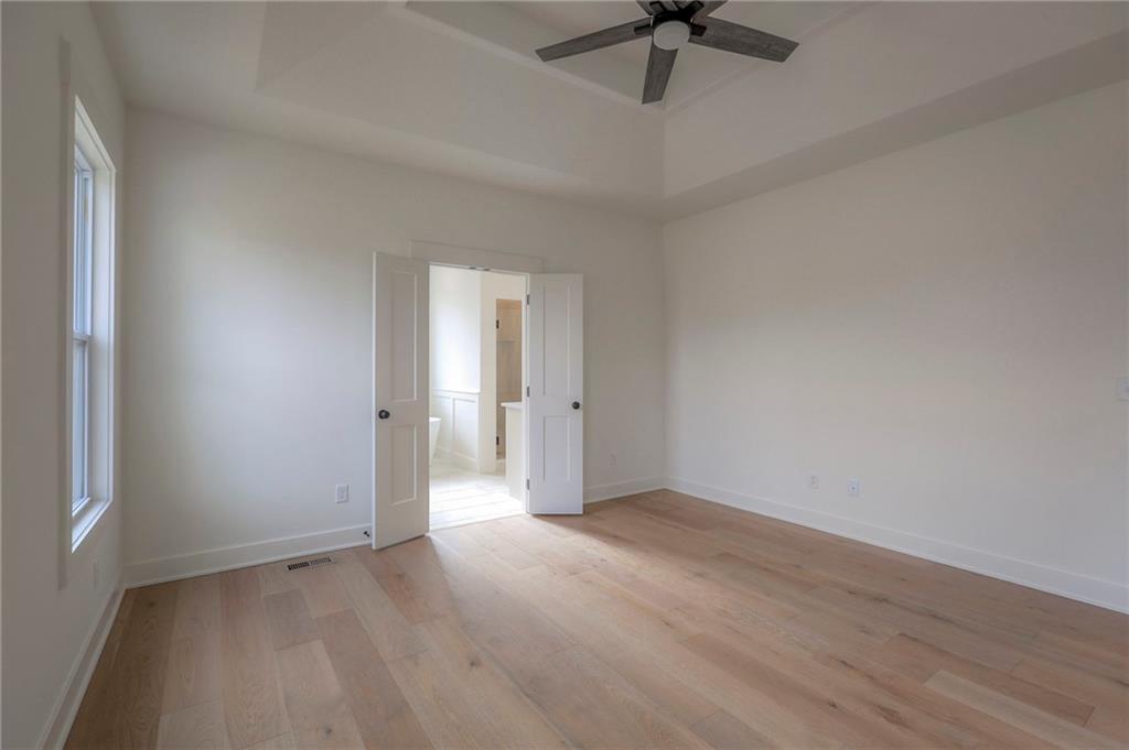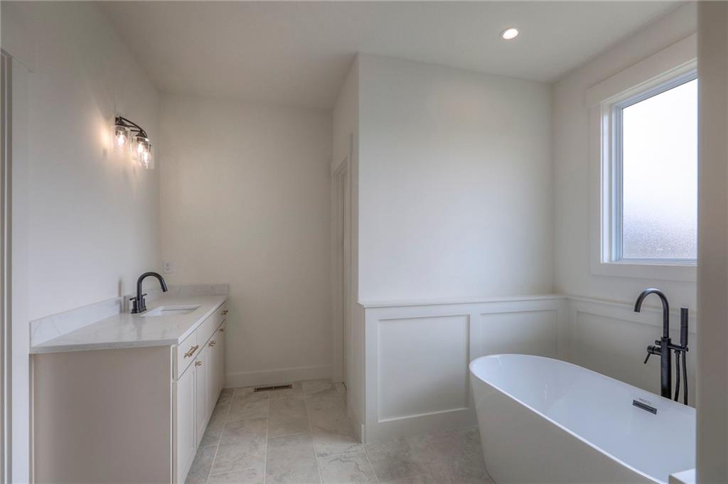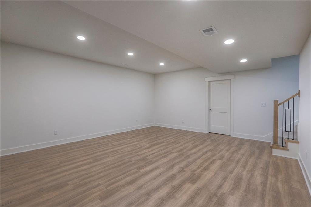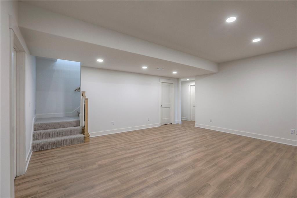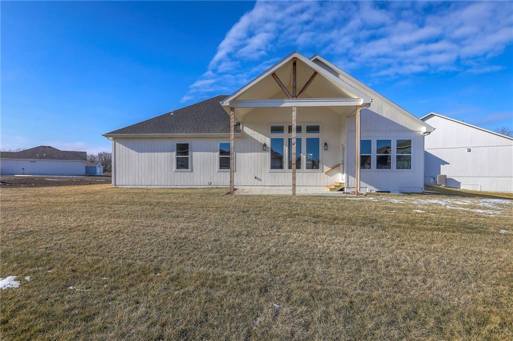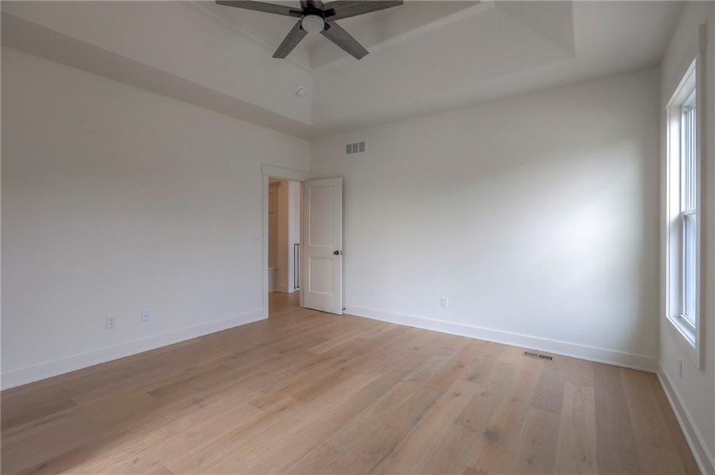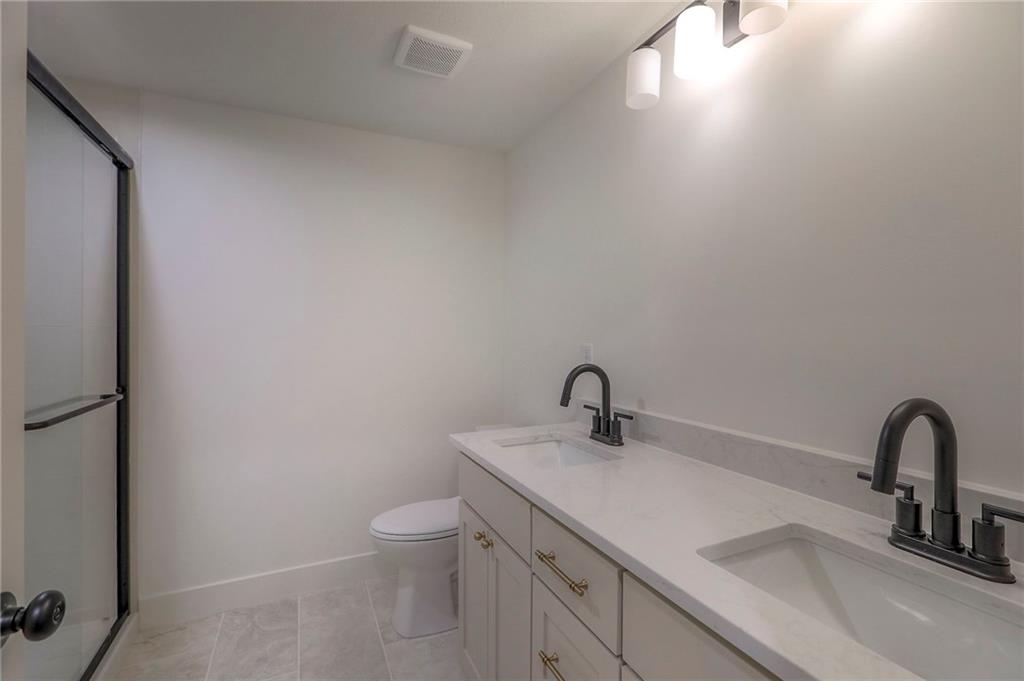 MOVE IN READY! New 5 Bedroom ranch w/ 3 bathrooms up and 2 bedrooms down. Hardwood floors throughout the main level. Open kitchen/family room with 12' ceiling. Master bath features split sinks with soaker tub & shower with rainfall head. Large master closet with easy access to laundry. Kitchen features custom cabinets, quartz tops, 6 burner gas cooktop, Kitchen Aid appliances and walk in pantry. All tile wet areas. Large culdesac site, covered patio, sprinklers.
