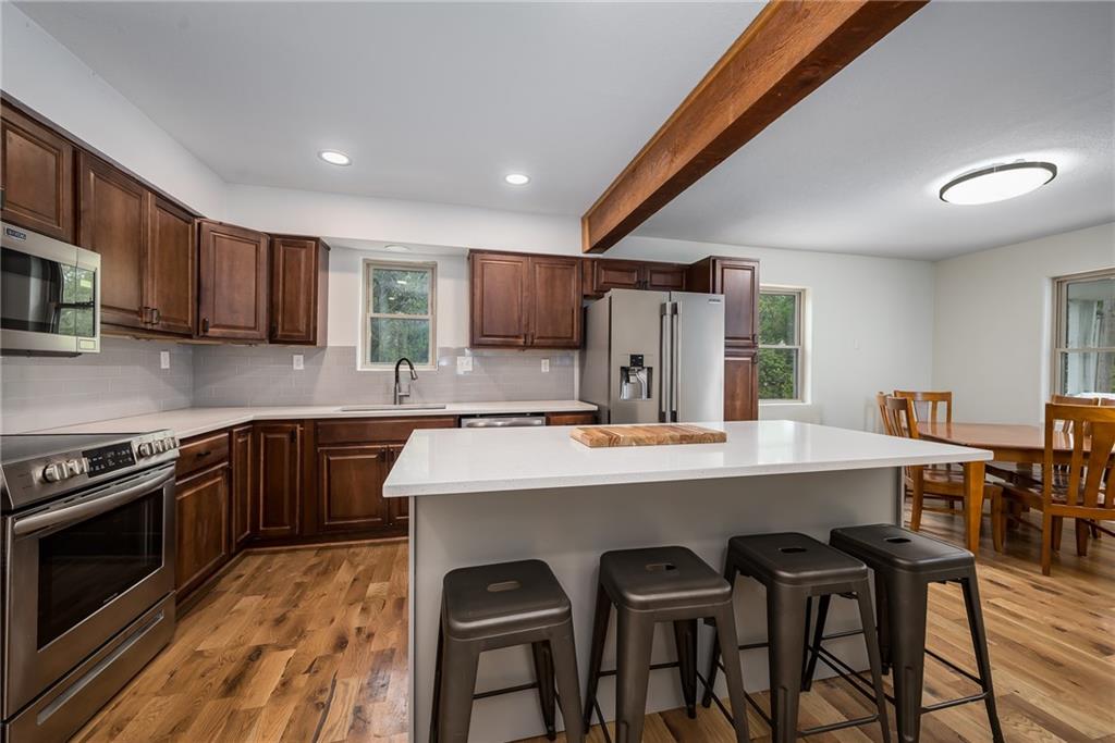Back on the Market w/ a NEW wider driveway! UPDATED 2 STORY HOME ON 1.2 acres WITH an OUTBUILDING! Sit on the front porch in the morning with a cup of coffee and enjoy the peace and quiet before starting your day! This wonderful country home features 5 bedrooms, 3 and a half bathrooms with recent updates to include: added kitchen island w/quartz counters throughout kitchen, HARDWOOD floors added throughout the main level, main level 1/2 bath laundry reconfiguration, 4th bedroom added to 2nd floor, remodeled/configured hall bath on 2nd floor, Primary Bath added to Primary Suite and MORE! Don't let the 1 car garage fool you- there is just as much space as a 2 car garage! The home was completely remodeled 5 years ago!