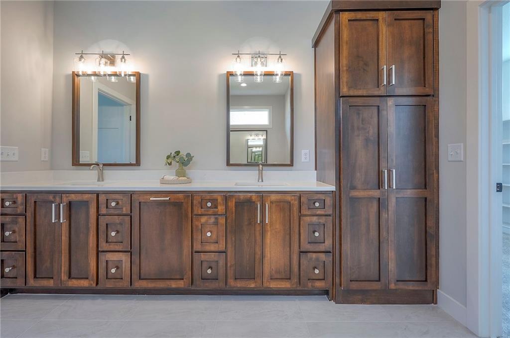 $15,000 Fall BUYER'S CHOICE REBATE available now! Expanded Fenwick Plan with 2 bedrooms up and 2 bedrooms down along with 3 full baths. Sitting on a cul-de-sac lot, backing east, the open floor plan centers on entertainment with custom kitchen cabinets and all quartz countertops, highlighted by a spacious kitchen island. The Main floor primary suite features a wonderful shower with a large walk-in closet which flows into the convenient laundry room. Just off the garage entrance is an abundant "boot" bench and coat closet with access to the large pantry. A second main floor bedroom and full bath sits on the back of the house behind the kitchen. The finished lower level has a two bedrooms, rec room and full bath. Oversized two car garage is 24' deep.