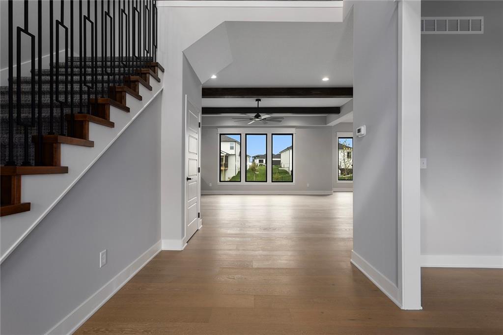 COMPLETED AND MOVE-IN READY! A NEW floorplan now available in Prairie Field by McBee Custom Homes! The Monticello is a 2-story plan that maximizes the living spaces on the main floor! Open concept living room, dining room and kitchen. Kitchen has a large walk-in pantry and beautiful island. BONUS: the main floor has a dedicated den/office AND a flex room that could be utilized as a bedroom or an additional home office with a full bathroom! Second floor is home to the primary bedroom suite and a private guest suite and two bedrooms with shared hall bathroom, making a total of four bedrooms upstairs and FIVE BEDROOMS altogether! Estimated completion Fall 2025. Come see this home in Prairie Field, in the Liberty School District. Photos are sample photos and progress photos.
