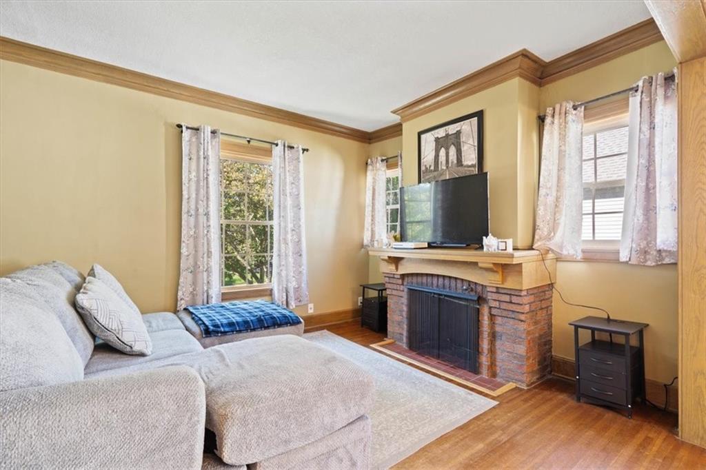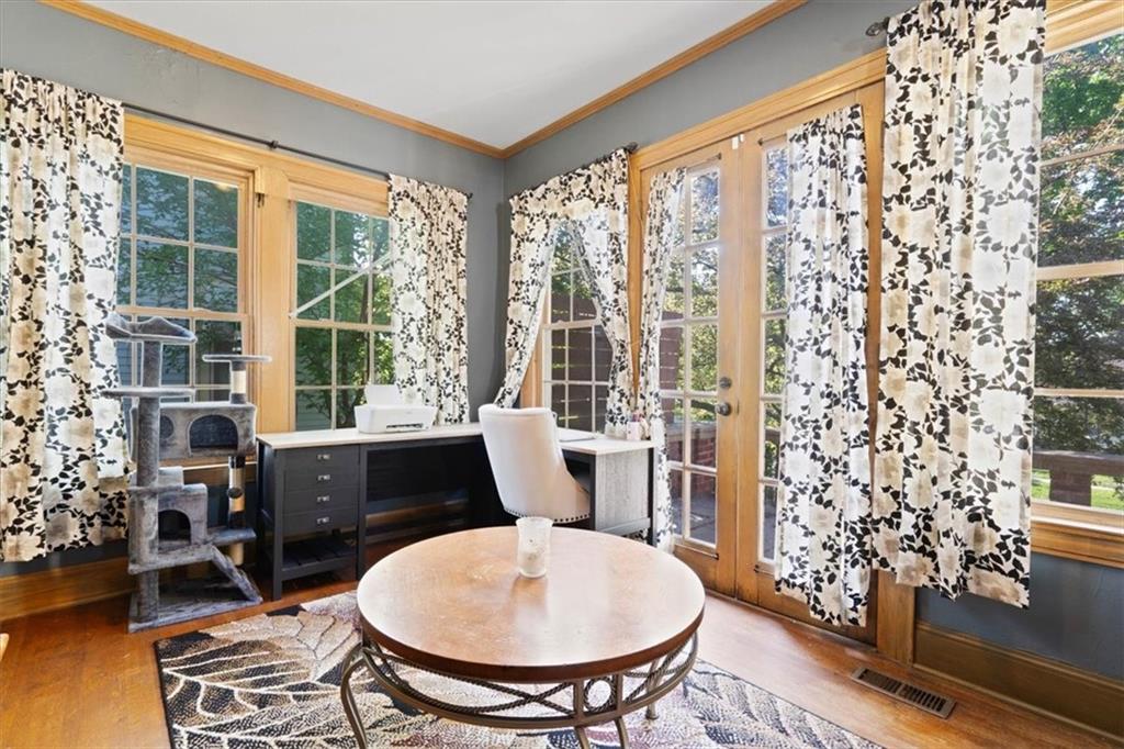 This wonderful home really stands out with its tremendous character and unique charm! Inside, you'll find beautiful tall ceilings and spacious bedrooms. There's also a fantastic bonus bedroom and a full bathroom located upstairs, offering great flexibility. The kitchen is lovely, featuring updated see-through cabinets. The location is also very convenient. Adding to its appeal, the home includes energy-saving solar panels and a private backyard, perfect for relaxing. It also has a detached garage for your convenience. The property is further enhanced by mature trees and a beautiful lawn.
